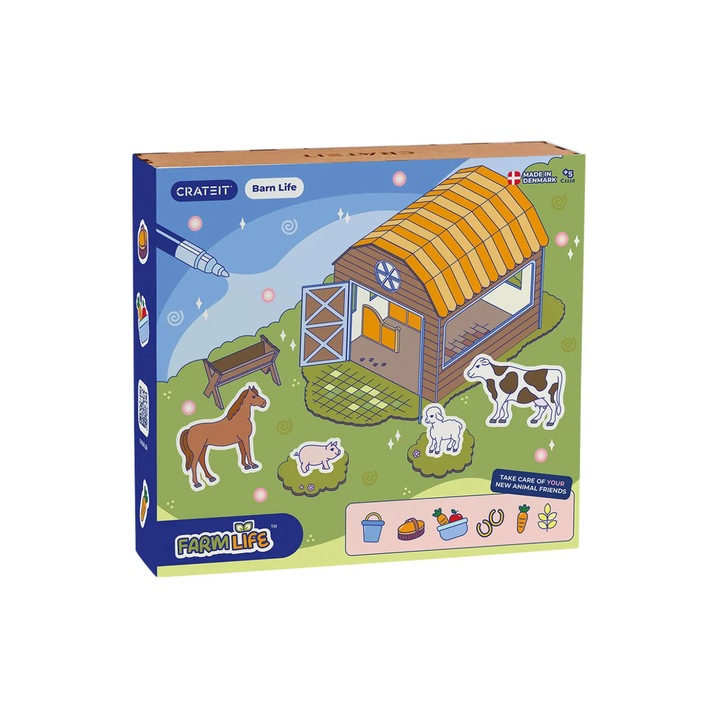 Tag dine børn med på et eventyr på landet med Crateit Barn Life, en del af vores populære Farmlife-serie. Dette unikke trælegetøj er designet til at inspirere til kreativ leg og læring, hvor børnene kan tage sig af deres egne gårddyr og skabe en levende bondegård.Bondegårds-universet kan kombineres på kryds og tværs, og derfor kan du let kombinere stalden med markerne og bondehuset. Specifikationer: Produceret i Danmark. Antal figurer/dele: 1 byg-selv stald, 7 figurer, 4 hegn i kassen. Varenummer: C1118. Størrelse på pakken: 23x21x5x6.5cm. Vægt: 1120 g. Alle vores produkter er produceret i træ uden farve. Det skal du påføre selv. Kan farvelægges med alle slags tuscher, maling og farveblyanter. Tuscher følger ikke med og kan købes ved siden af.