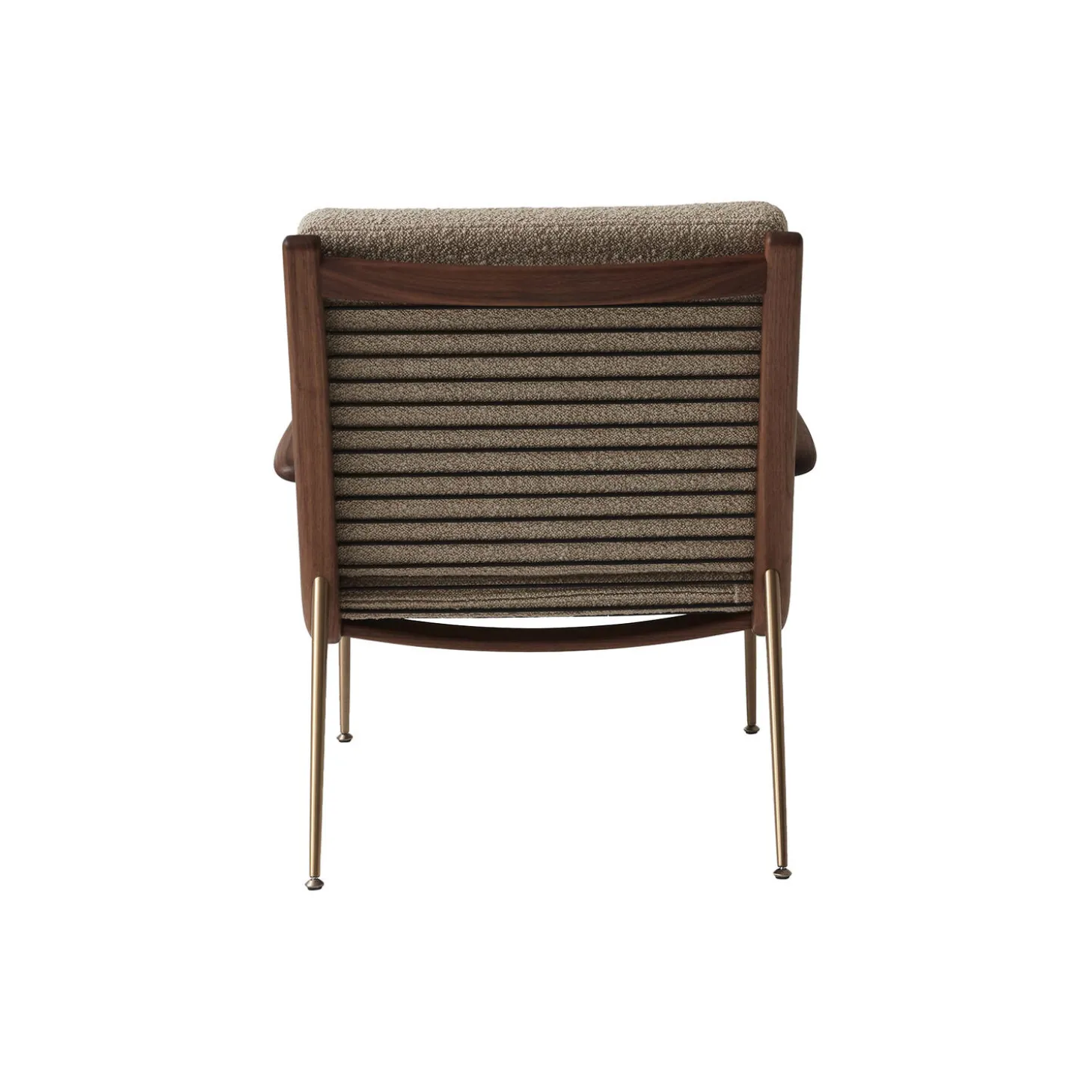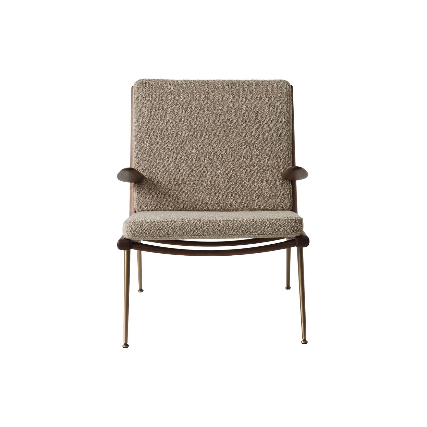 Boomerang HM2 loungestol i olieret valnød med hynde i Karakorum 003 tekstil og stel i messing fra &Tradition. Farve: olieret valnød/beige. Mål: H: 80 x B: 69 x D: 69 cm. Siddehøjde: 42 cm. Design: Hvidt & Mølgaard.