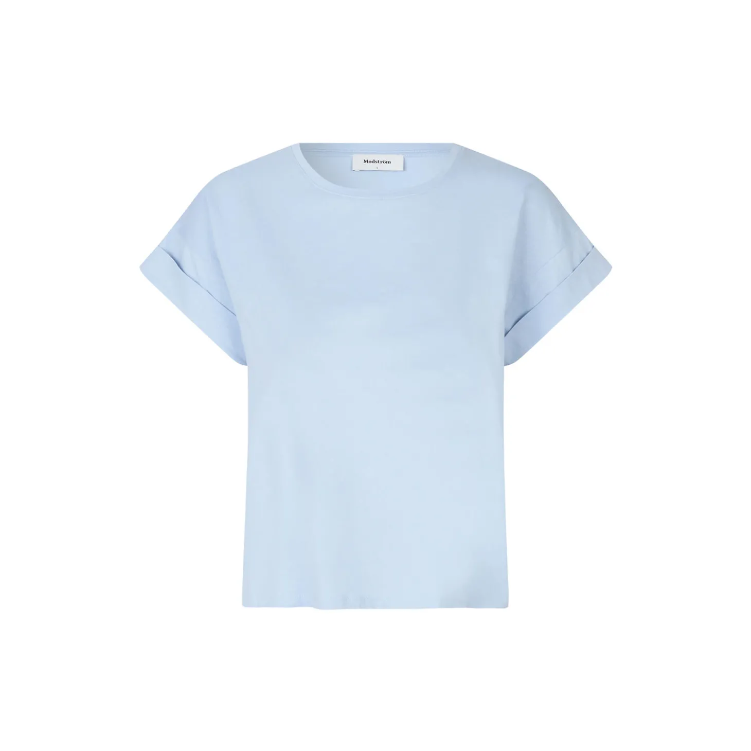 T-shirt i økologisk bomuld med en smule kortere længde. BrazilMD short t-shirt har rund hals og opsmøgede ærmer. Modellen er 177 cm og har en størrelse S/36 på.