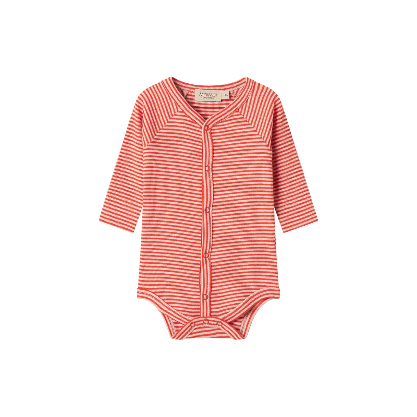 Enkel langærmet bodystocking, der bliver lukket med trykknapper hele vejen ned foran samt mellem benene for nem bleskiftning.