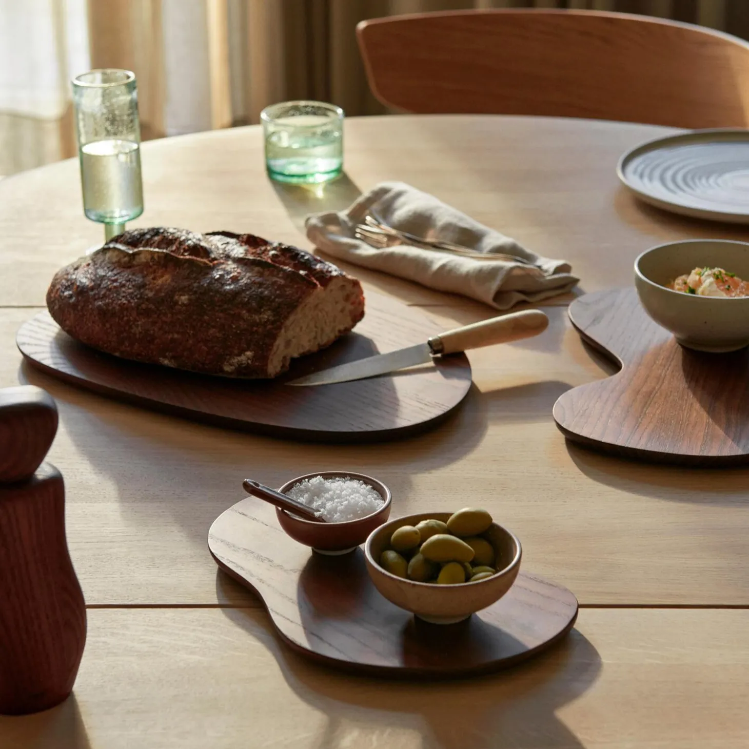 Cairn Cutting Boards er karakteriseret ved deres bløde kurver og skulpturelle detaljer og tilføjer et kunstnerisk element til måltiderne. De organiske træformer er inspireret af varder, menneskeskabte stenbunker, der ofte er rejst som mindesmærker. De er skåret ud af massivt FSC®-certificeret asketræ og behandlet med en karboniseret finish og har fine, afrundede kanter for at give et karakterfuldt look. Brug dem, når du tilbereder måltider i køkkenet, eller som en dekorativ måde at servere mad ved middagsbordet på.