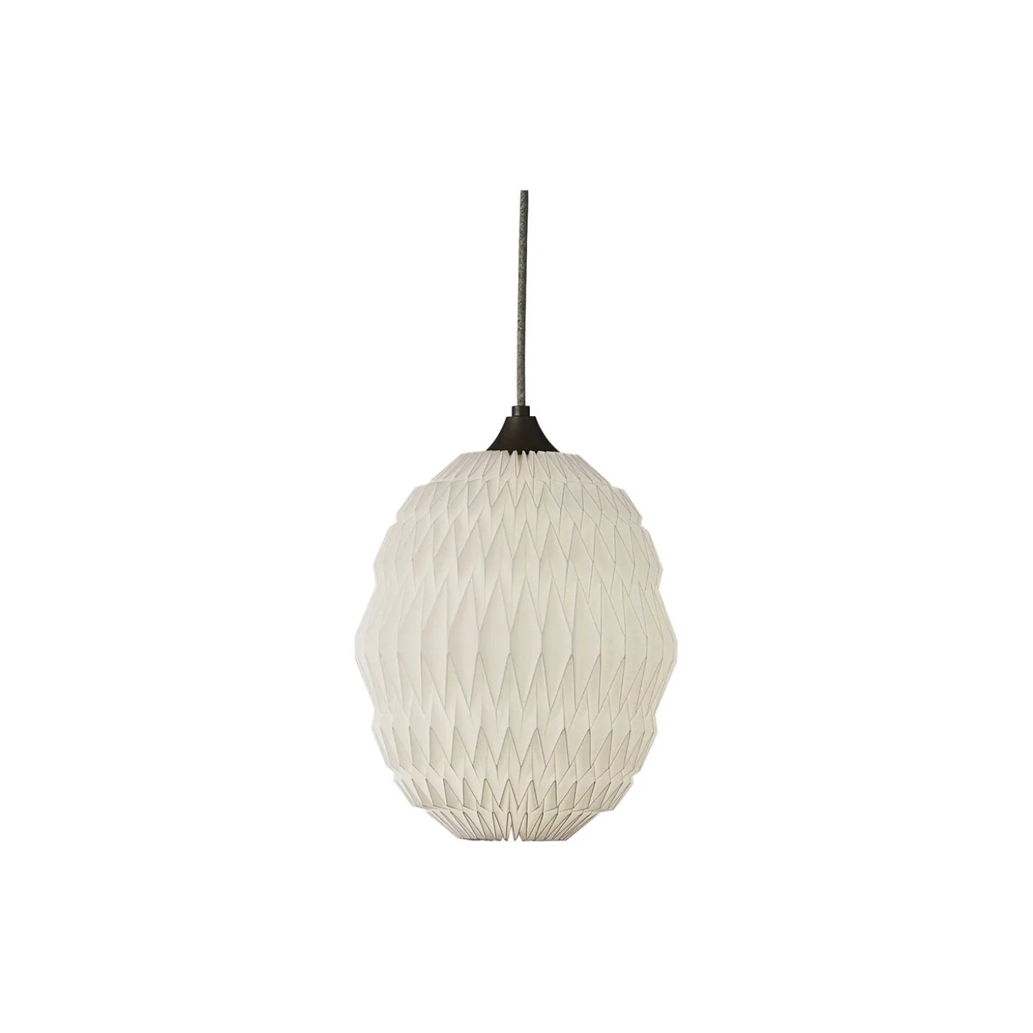 Caleo 1 pendel med base i metal og skærm i papir fra LE KLINT. Farve: hvid. Mål: H: 33 x Ø 24 cm. Lyskilde: maks. 20W E27. Design: Rikke Frost.