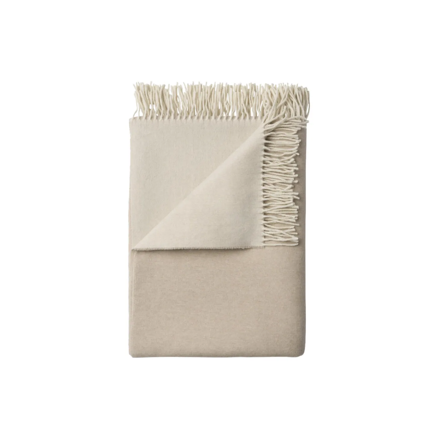 CALM throw is 100% recycled and 100% natural. Made from recycled wool and recycled cashmere in Italy.With its versatile, classic look and fine fringes, it adds a touch of elegance and softness to your home.Beautiful two-toned natural colors, which will perfectly match any room in your home – a lovely piece of long-lasting interior, you will love for years to come. We are incredibly happy to have started a production with recycled cashmere and wool in Italy. The fine materials are recycled, woven or knitted into new beautiful products.Italy is known for amazing craftsmanship and their ability to recycle materials is unique.CALM is made from 80% wool and 20% cashmere. Recycled materials, that have been carefully collected, transformed into small fibers, spun into the finest yarn, and woven into a beautiful, conscious product, ready to embrace a new owner.Many manufacturers use polyester material when recycling wool and cashmere. We do not – our products are 100% natural and comply with international standards for recycling. Reduce – Reuse – RecycleReusing materials not only reduces the waste sent to landfills, but also helps to conserve energy and resources that would otherwise be used to produce a new item. By reusing materials, we can help mitigate the negative effects of climate change and make a positive impact on the planet. Love to People & PlanetSize guide130 x 180 cmMaterial80:20 wool:cashmere CALM comes in a beautiful box in recycled FSC-certified carton paper, with the CARE BY ME logo on.