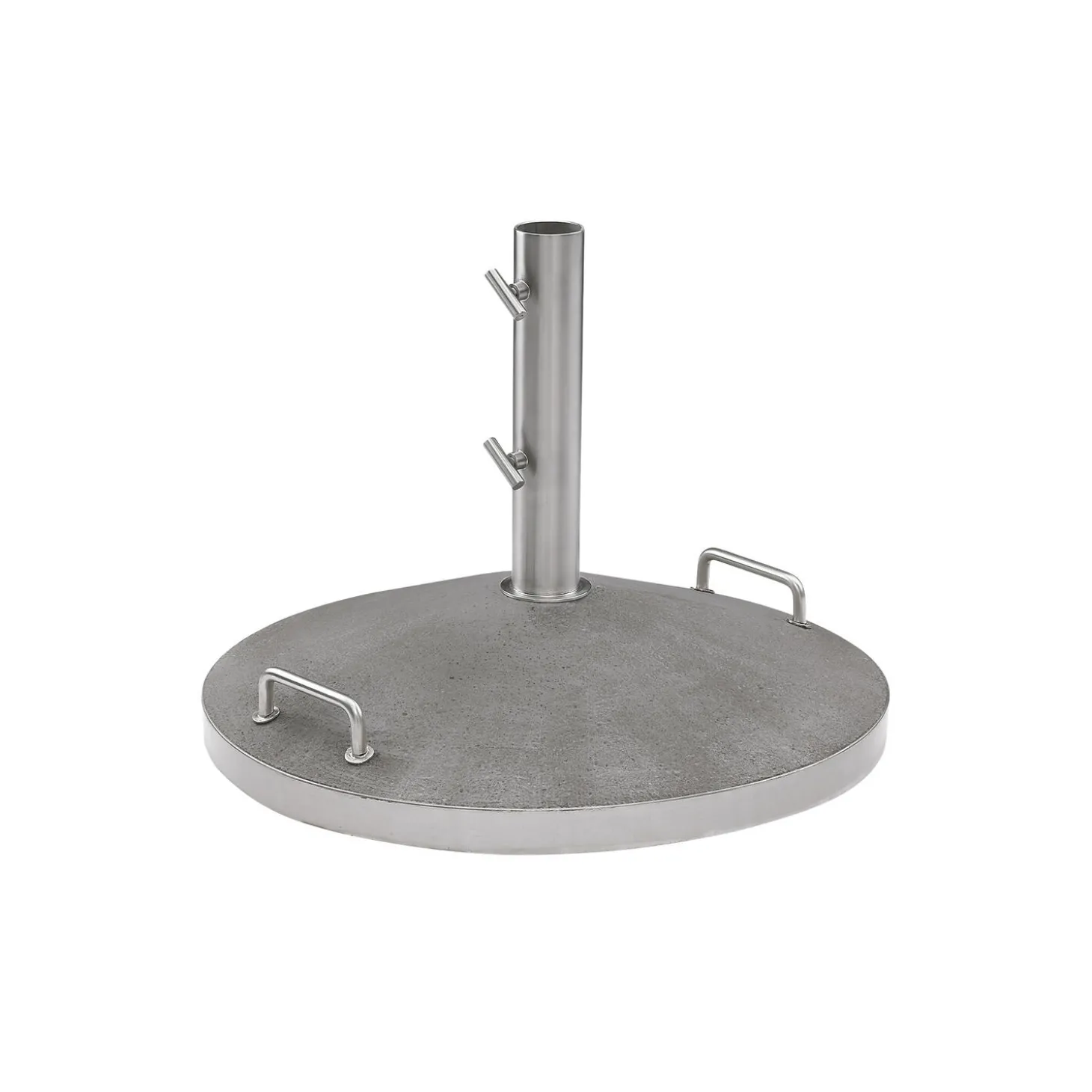 Capri er en funktionel og robust parasolfod af stål og beton. De naturlige, solide materialer holder år efter år, og designet sørger for, at regnen nemt løber af. Capri parasolfod 50 kg er solid og stabil og passer til vores parasoller i størrelserne 270×270, Ø300, 300×300, Ø330 og 330×330. Fodens let koniske form sørger for, at regnen nemt løber af, og de robuste materialer holder stand mod vind og vejr år efter år. Capri parasolfod 50 kg er udstyret med hjul og håndtag, så den er nem at flytte rund