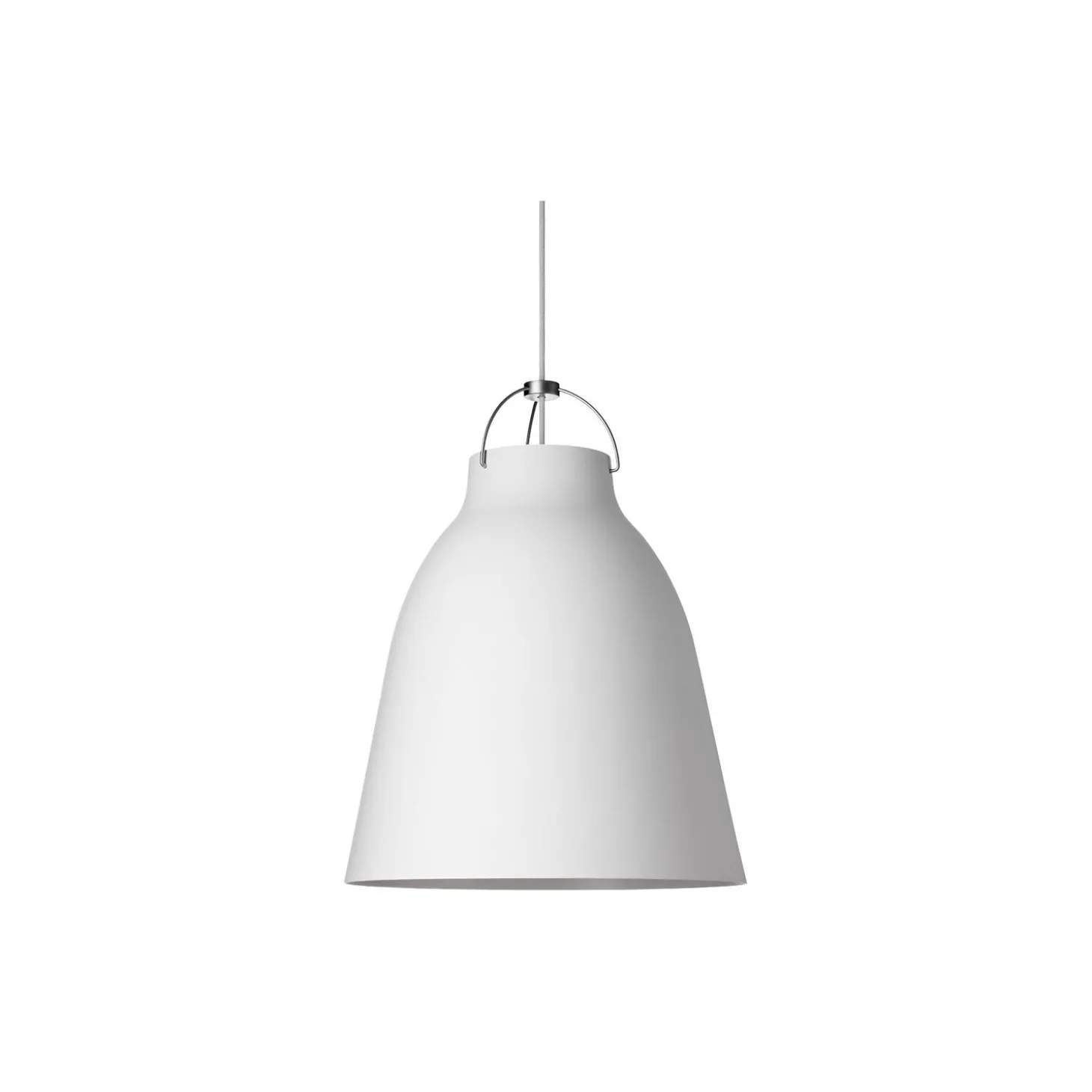 Caravaggio™ P3 pendel i optrukket aluminium og matlakeret metal fra Fritz Hansen. Farve: mat hvid skærm og hvid stofledning. Længde: 3 m. Mål: 51,6x dia.: 40 cm. Lyskilde: E27 max. 42 W. Design: Cecilie Manz.