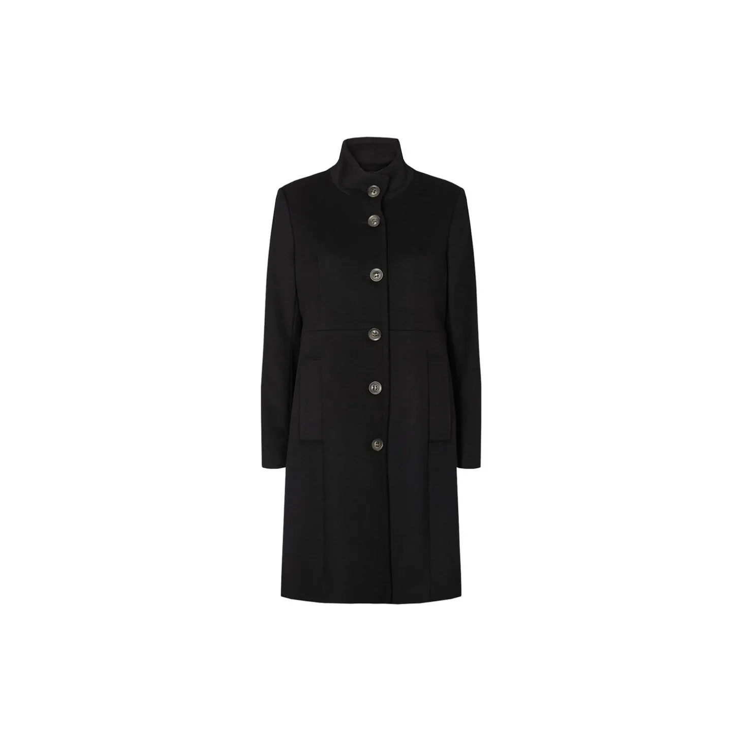 Coat with high-neck and side pockets. Slightly high-waisted fit
