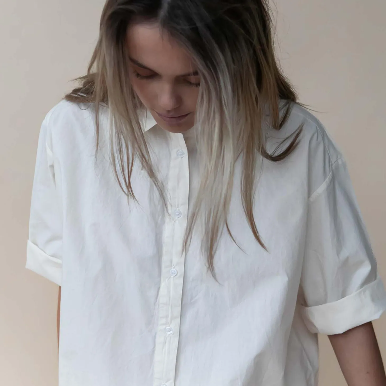Fin skjorte i et oversized og herreinspireret fit med korte ærmer, almindelig krave og gennemknappet stolpelukning. Cecilia shirt er produceret i en let, økologisk bomuldspoplin, og alle indvendige syninger er med franske sømme for en delikat og luksuriøs finish. Få et stilfuldt, men alligevel afslappet sommersæt ved at sætte skjorten sammen med de klassiske Norah shorts eller de lidt kortere Jasmin shorts. Lav gerne et lille opsmøg på ærmet, så looket bliver endnu mere casual.