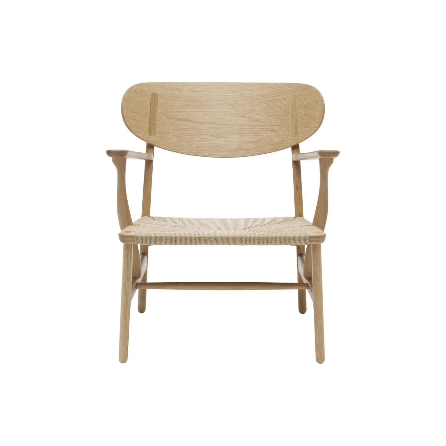 CH22 loungestol i sæbebehandlet eg med sæde i papirgarn fra Carl Hansen & Søn. Farve: sæbebehandlet eg/natur. Mål: H: 72,5 x B: 69,5 x D: 61,5 cm. Siddehøjde: 37 cm. Design: Hans J.Wegner.