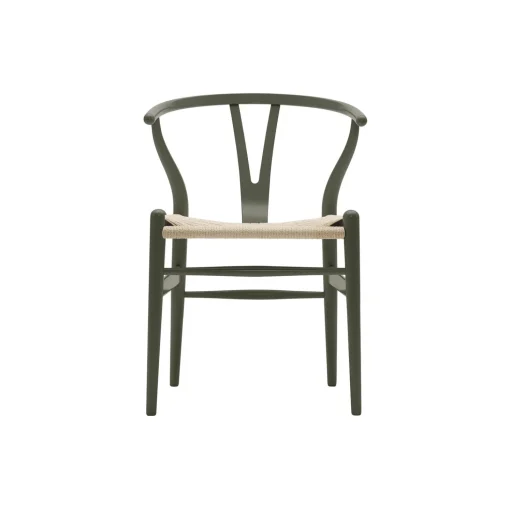 CH24 Y-stolen spisebordsstol i lakeret bøg med sæde i papirgarn fra Carl Hansen & Søn. Farve: olive green/natur. NCS S6020-G50Y. Mål: H: 76 x B: 55 x D: 51 cm. Siddehøjde: 45 cm. Design: Hans J. Wegner.