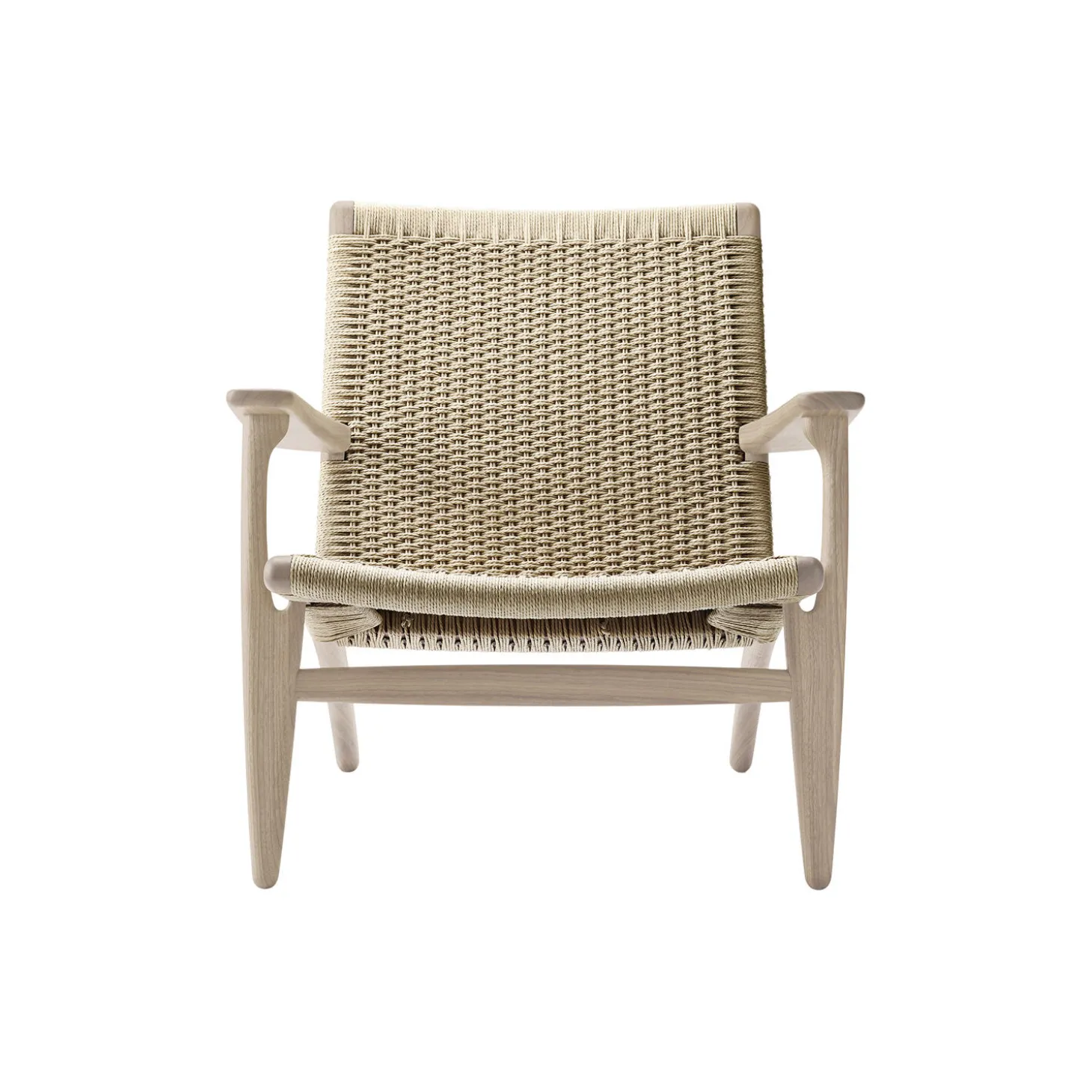 CH25 loungestol i sæbebehandlet eg med sæde i papirgarn fra Carl Hansen & Søn. Farve: sæbebehandlet eg/natur. Mål: H: 73 x B: 71 x D: 73 cm. Siddehøjde: 35 cm. Design: Hans J. Wegner.