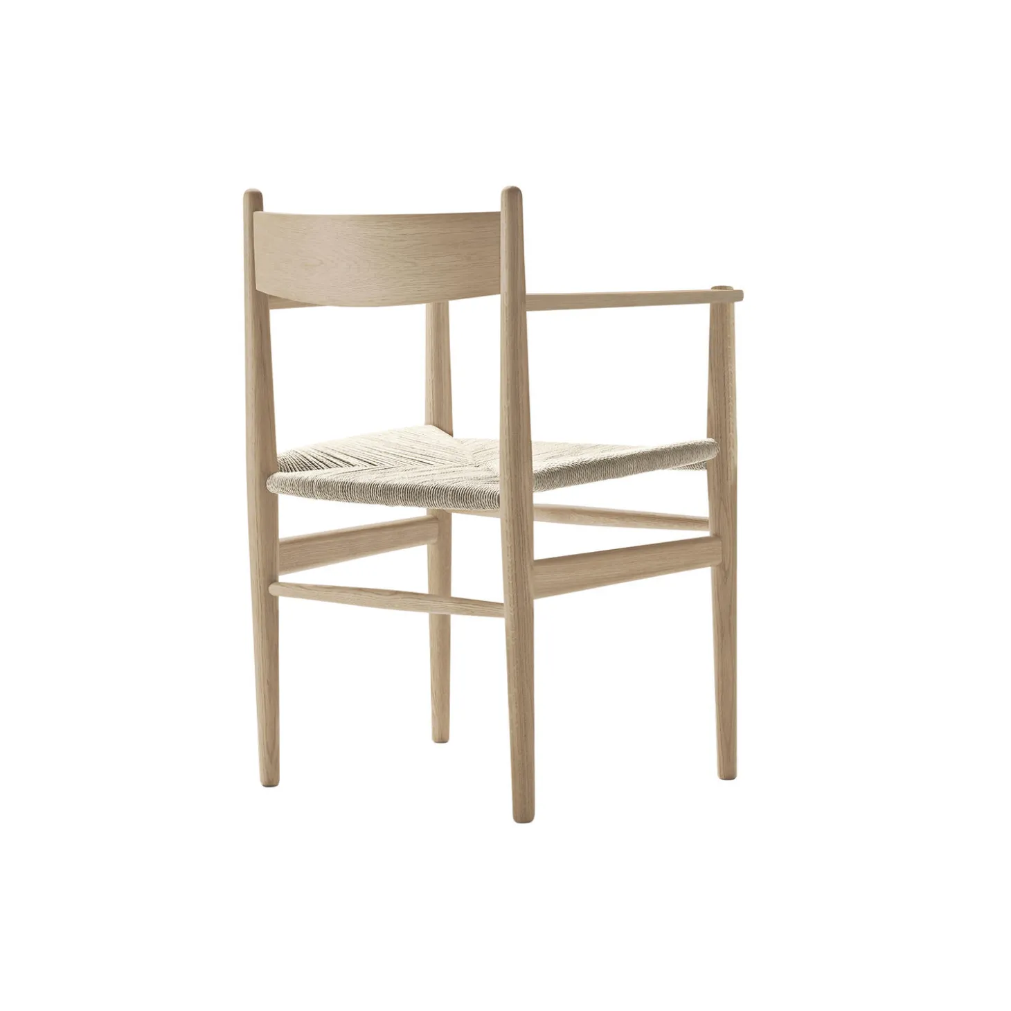 CH37 spisebordsstol i hvidolieret eg med sæde i papirgarn fra Carl Hansen & Søn. Farve: hvidolieret eg/natur. Mål: H: 81 x B: 58 x D: 50 cm. Siddehøjde: 45 cm. Design: Hans J. Wegner.