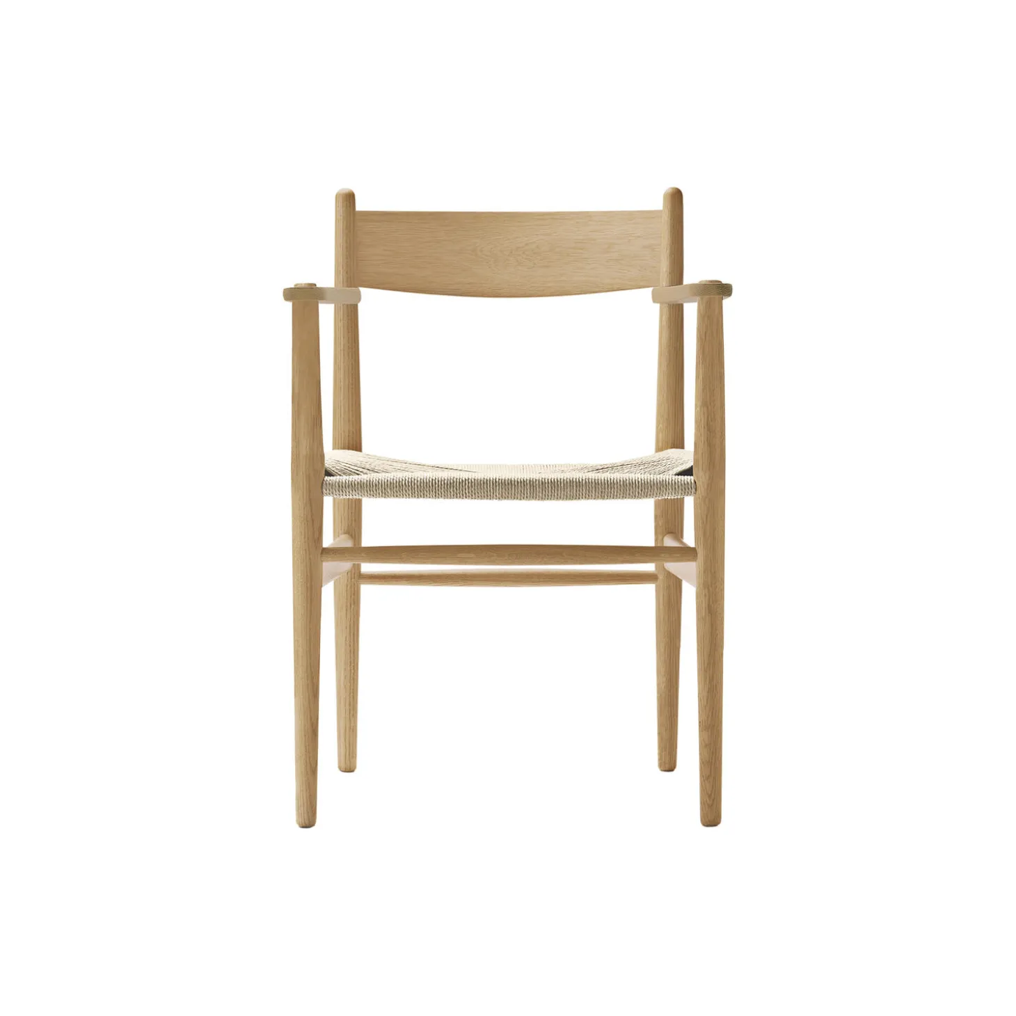 CH37 spisebordsstol i olieret eg med sæde i papirgarn fra Carl Hansen & Søn. Farve: olieret eg/natur. Mål: H: 81 x B: 58 x D: 50 cm. Siddehøjde: 45 cm. Design: Hans J. Wegner.