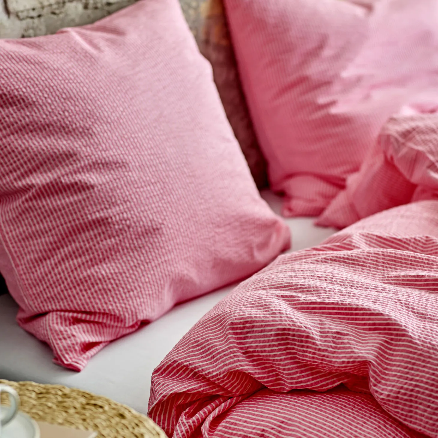 Skab en unik og iøjnefaldende indretning i soveværelset med vores stribede sengesæt i bæk og bølge-kvalitet. Farverne er hjørnestenen i Cheerful-sengetøjets design, det handler om at tilføre livlige optimistiske farver i et ellers let og minimalistisk rum. Sengesættet er fremstillet i 100 % garnfarvet bomuld med bæk og bølge-effekt. Bæk og bølge-kvaliteten har gode åndbare egenskaber, hvilket betyder, at det tillader luft at cirkulere. Med en smart lynlås på både dyne- og pudebetræk er det hurtigt og nemt at skifte sengetøj. Alle Södahls sengesæt kan vaskes ved 60 grader. Desuden leveres sengesættet i en stofpose i samme kvalitet. Posen kan genbruges.