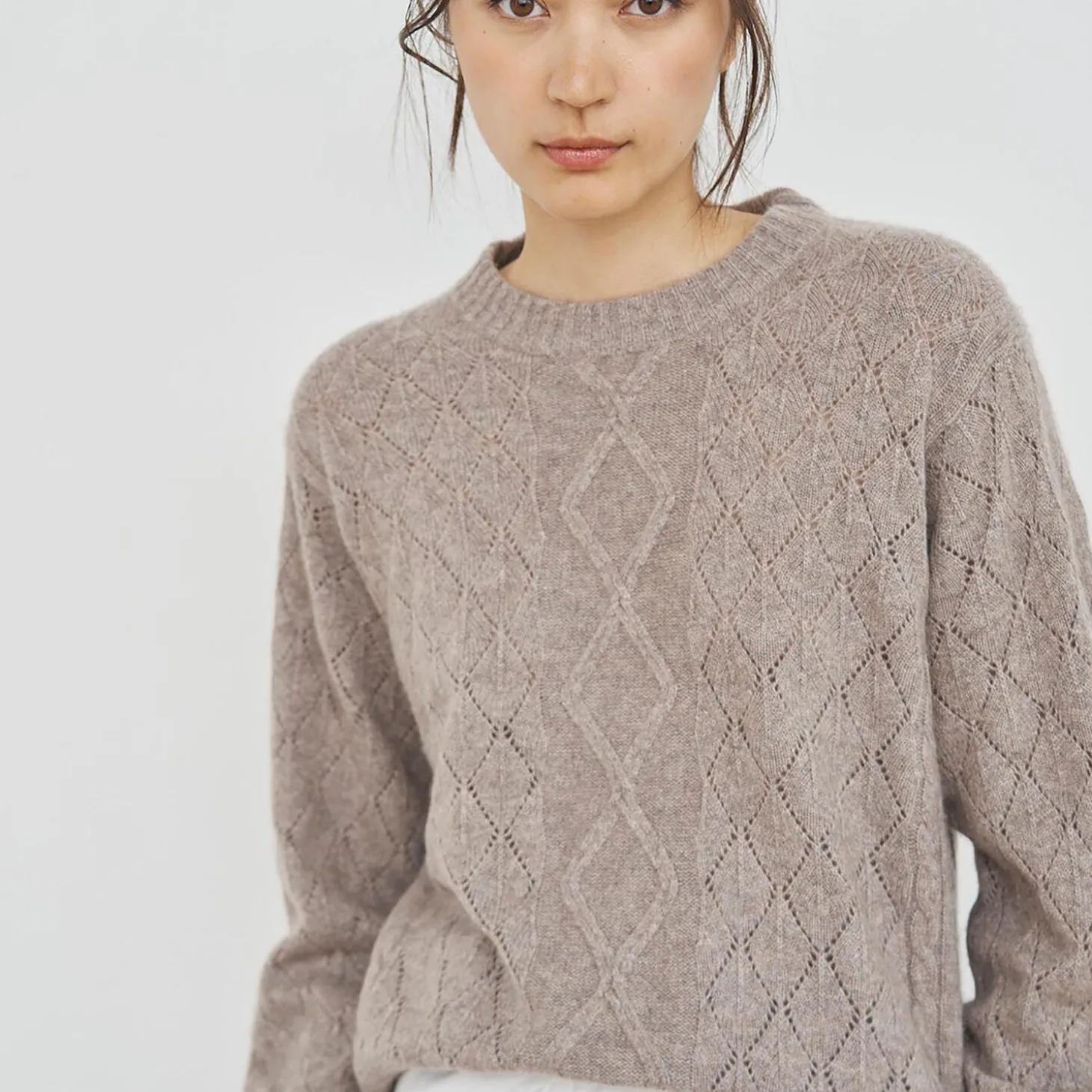En feminin og luksuriøs sweater fremstillet af ren håndlavet kashmir med en smuk blanding af kabelstrik og delikate mønstre i stil med vores populære Christine t-shirt. Den har en afslappet, men klassisk pasform med rund hals, raglanærmer og ribkanter ved håndleddene. Perfekt til alle årstider, let at sætte sammen med dine yndlingsbukser eller -nederdel eller bære over din sommerkjole for at forlænge sommerfølelsen. Certificeret håndlavet og omhyggeligt fremstillet på en gammeldags håndstrikmaskine uden brug af elektricitet i vores sociale værksted i Kathmandu, Nepal.