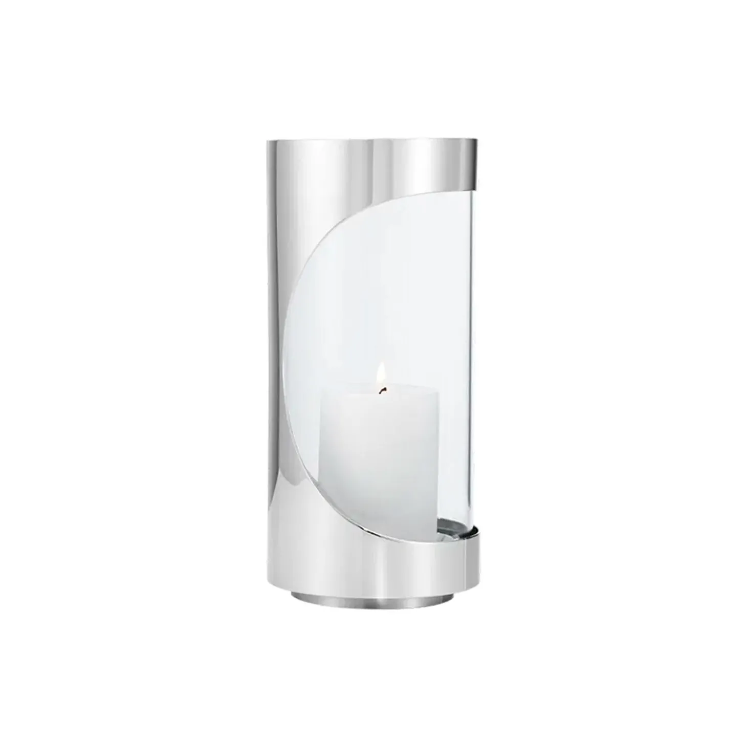 Chrome Contours kollektionen er designet af Maria Berntsen og byder på elegante hurricanes til levende lys. Lysestagerne har et minimalistisk udtryk med karakter, og designet er både tidløst og unikt. Lysestagerne giver et smukt lys udendørs, og de er perfekte til at skabe en varm og hyggelig stemning under åben himmel. Denne lysestage er til bloklys, som er op til 60 mm i diameter, og den passer også til lys fra Georg Jensen. Lysestagen har en praktisk bund, som kan fjernes for nem rengøring.