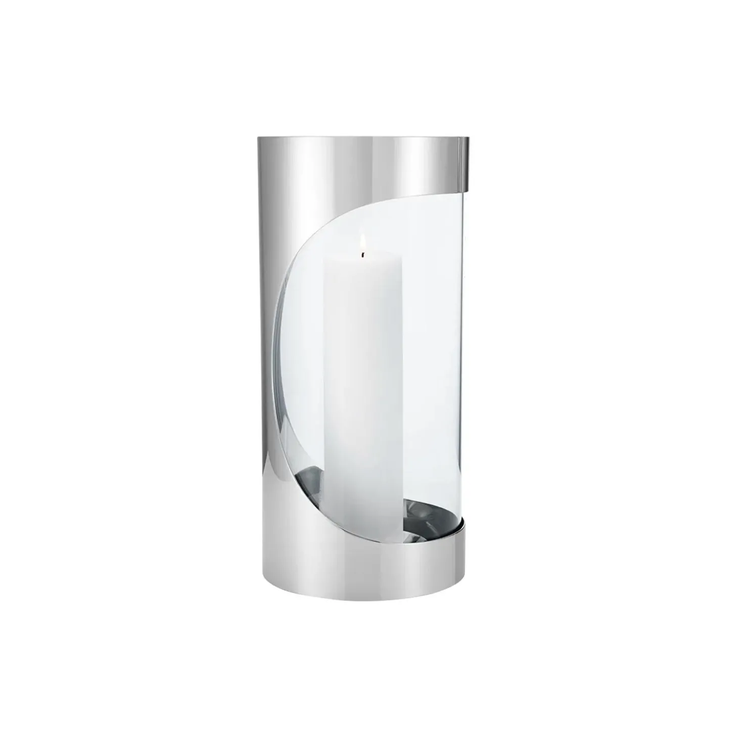 Chrome Contours kollektionen er designet af Maria Berntsen og byder på elegante hurricanes til levende lys. Lysestagerne har et minimalistisk udtryk med karakter, og designet er både tidløst og unikt. Lysestagerne giver et smukt lys udendørs, og de er perfekte til at skabe en varm og hyggelig stemning under åben himmel. Denne lysestage er til bloklys, som er op til 60 mm i diameter, og den passer også til lys fra Georg Jensen. Lysestagen har en praktisk bund, som kan fjernes for nem rengøring.
