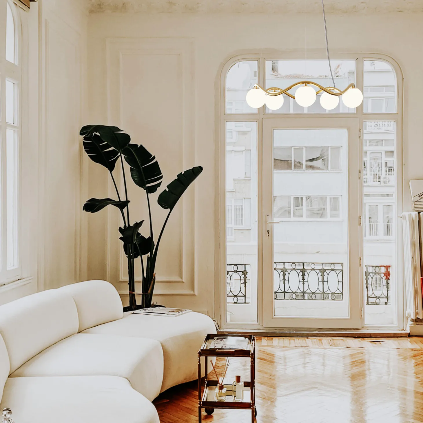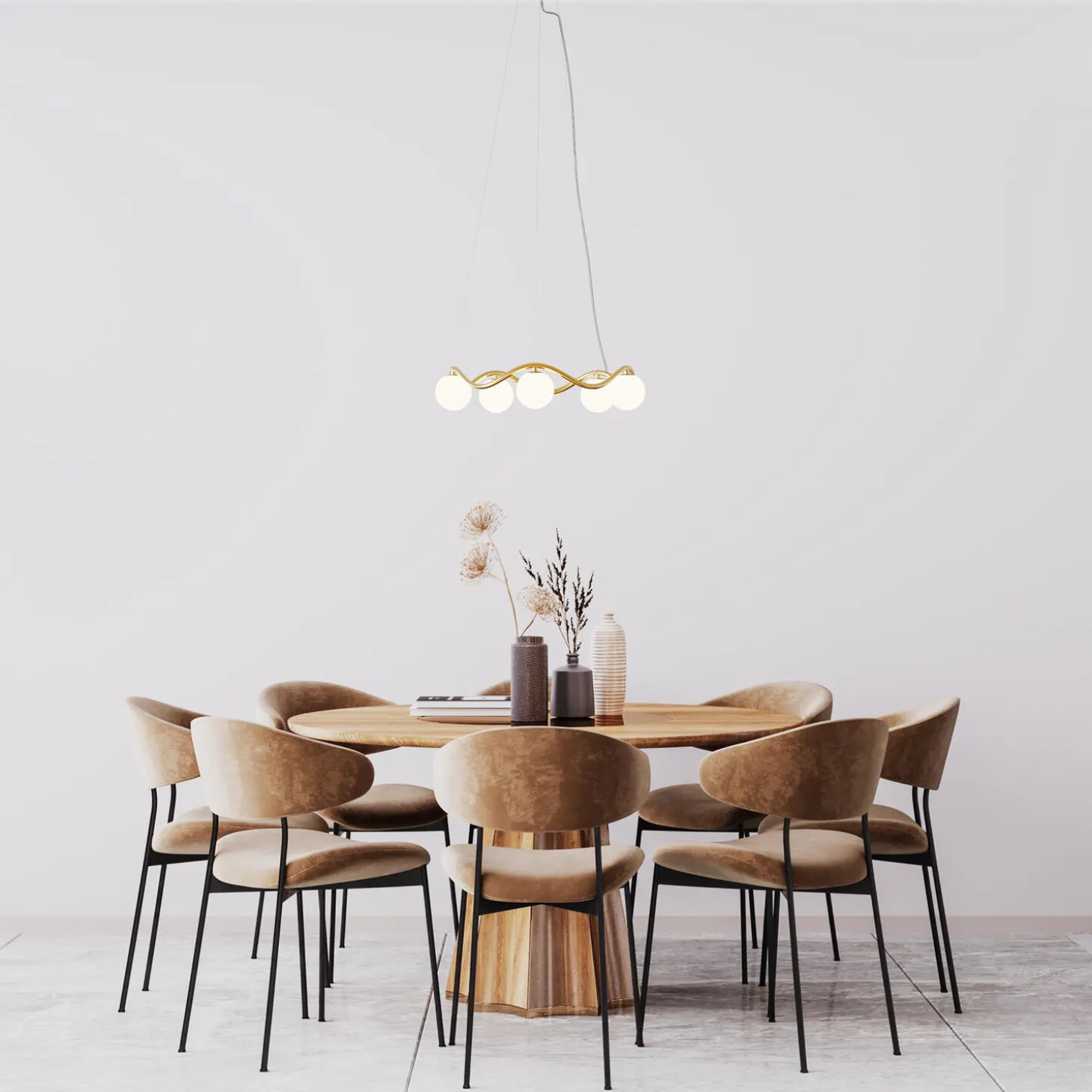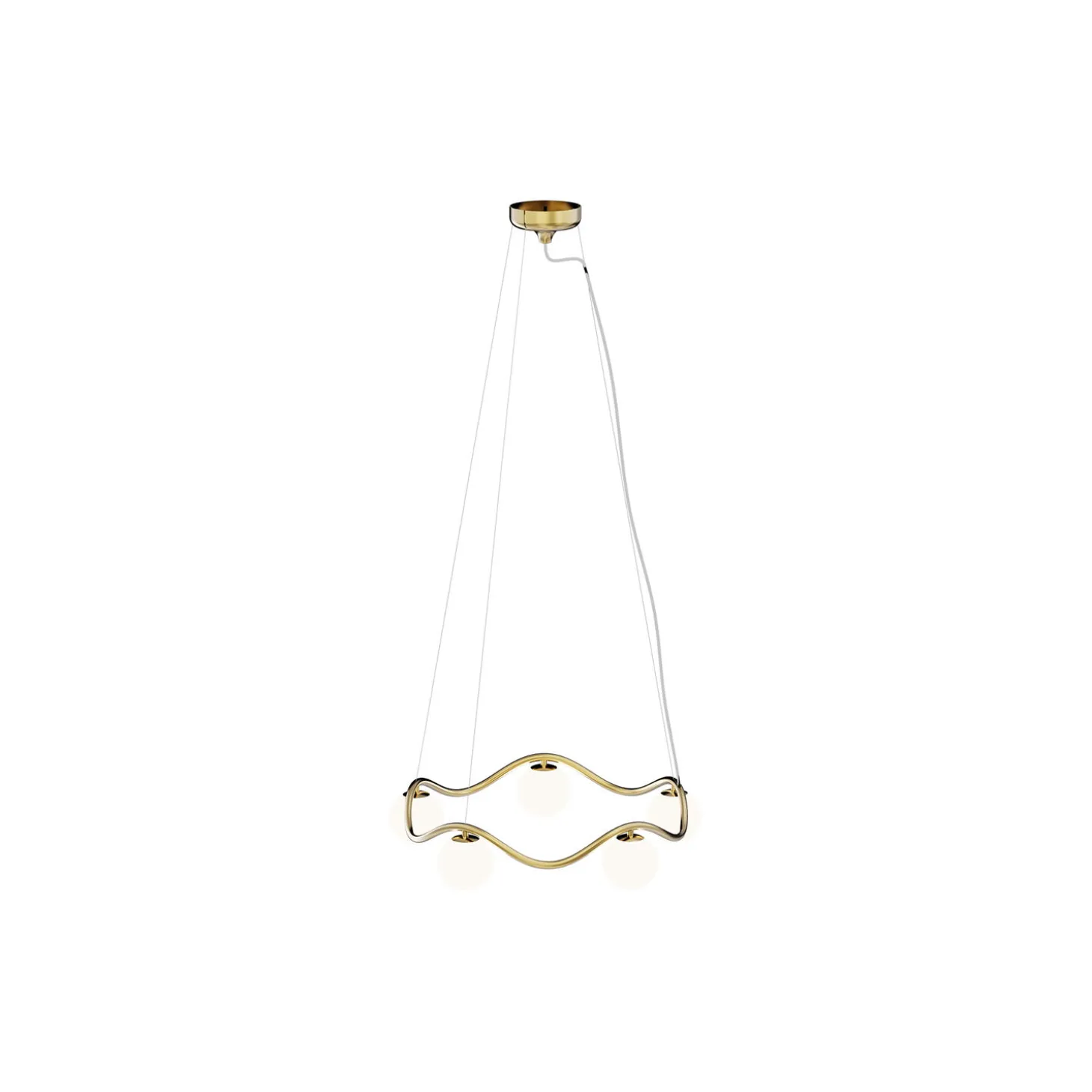 Lysekronen Circle of Life er inspireret af livets bølgegang, som går op og ned. De organiske kurver er meget harmoniske og giver designet et elegant og tidsløst udtryk. Rebello Decor arbejder udelukkende med eksklusive materialer, som kan holde i flere generationer. Lysekronen er håndlavet i messing, som har fået et lag mat lak, så den ikke patinerer. Glaskuglerne er mundblæst i opalglas.