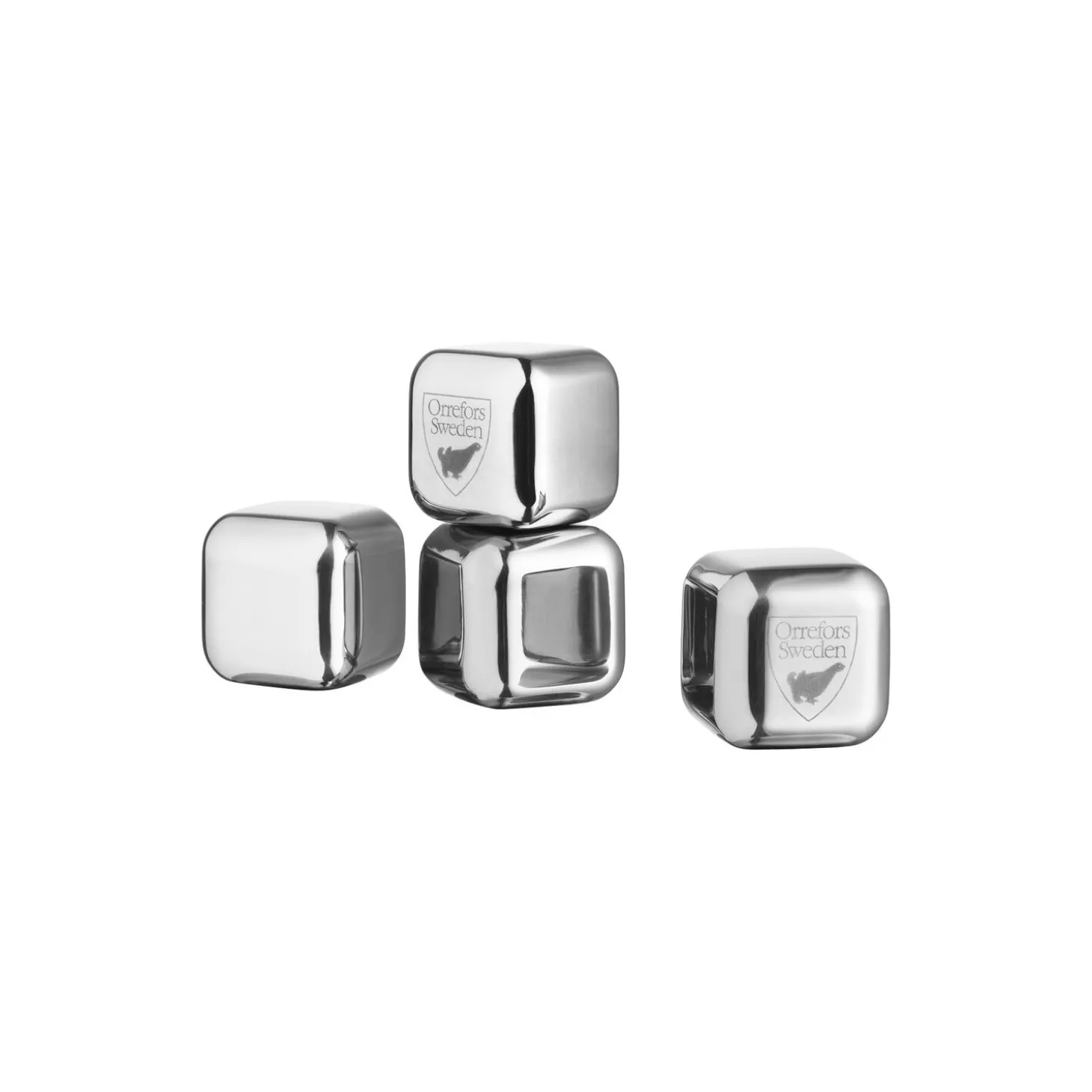 City Ice Cubes by Orrefors are made of stainless steel and can be used multiple times. Place the ice cubes in the freezer at least two hours before use and take them out when it is time to chill your drink. The ice cubes contain no toxic substances and neither absorb nor produce flavor. The liquid sealed inside the cubes consists of 99% water and less than 1% ethanol (pure alcohol). Designed by Martti Rytkönen.