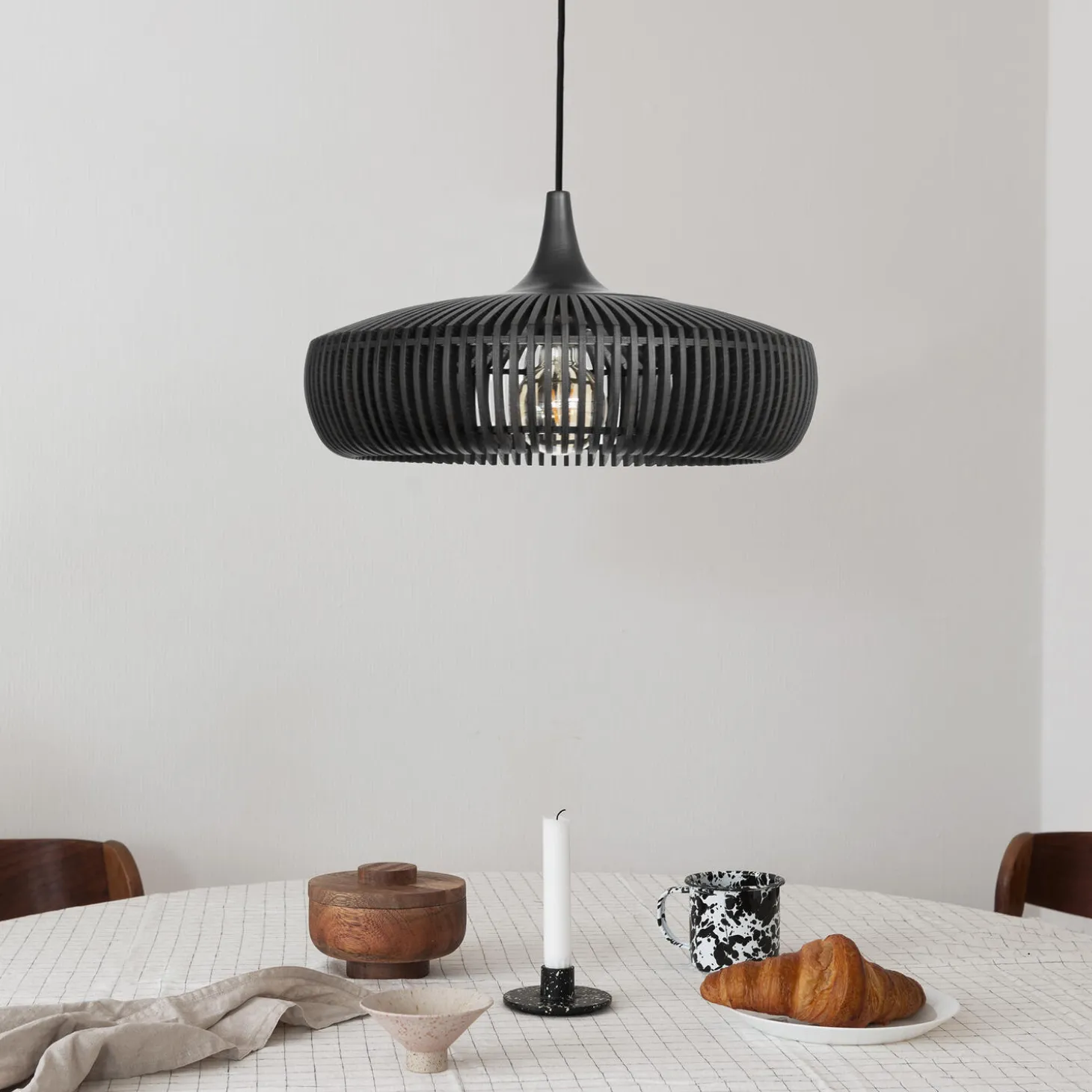 The Clava Dine Wood lampshade is designed from a craftmanship technique that requires a unique precision and accuracy due to the small distance between each lamella. The wooden lamellae are made from laser cut ash and oak veneer with a solid oak top. The lampshade stands out as a sculptural design piece that creates a playful flash of light on the walls in the surrounding space. The fidelity of the lamellae creates a beautiful pattern that can be admired from all angles, on the inside as well as on the outside the lampshade.