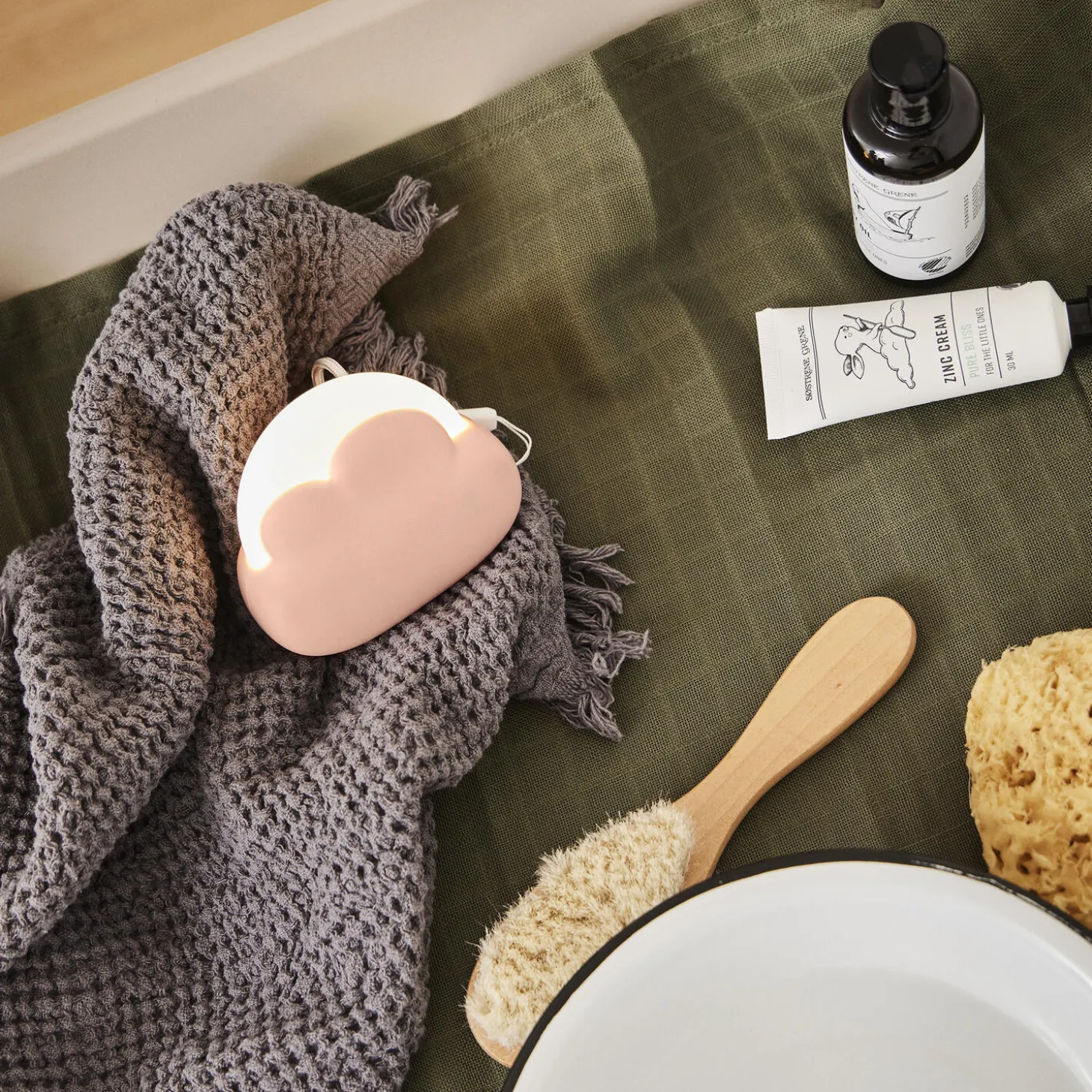 Cloudy er den mest bedårende lille LED-lampe. Den er perfekt til at hænge på tremmesengen, mens du vugger din baby i søvn. Tænd timerfunktionen, og den slukker automatisk efter 2 timer – eller forbliver blidt glødende hele natten. Og det er ikke det eneste, for den tilføjer også en dejlig dimension til dit puslebord. Cloudy har både varmt, koldt og rødt lys, så du kan skabe de ideelle rammer til enhver situation. Cloudy har 6 forskellige lysindstillinger. En ekstra positiv detalje er, at Cloudy ikke bliver varm, så du kan være rolig, selv hvis din lille giver den et kærligt klem. Lampen er PFAS-fri og indeholder rødt lys til amning om natten.