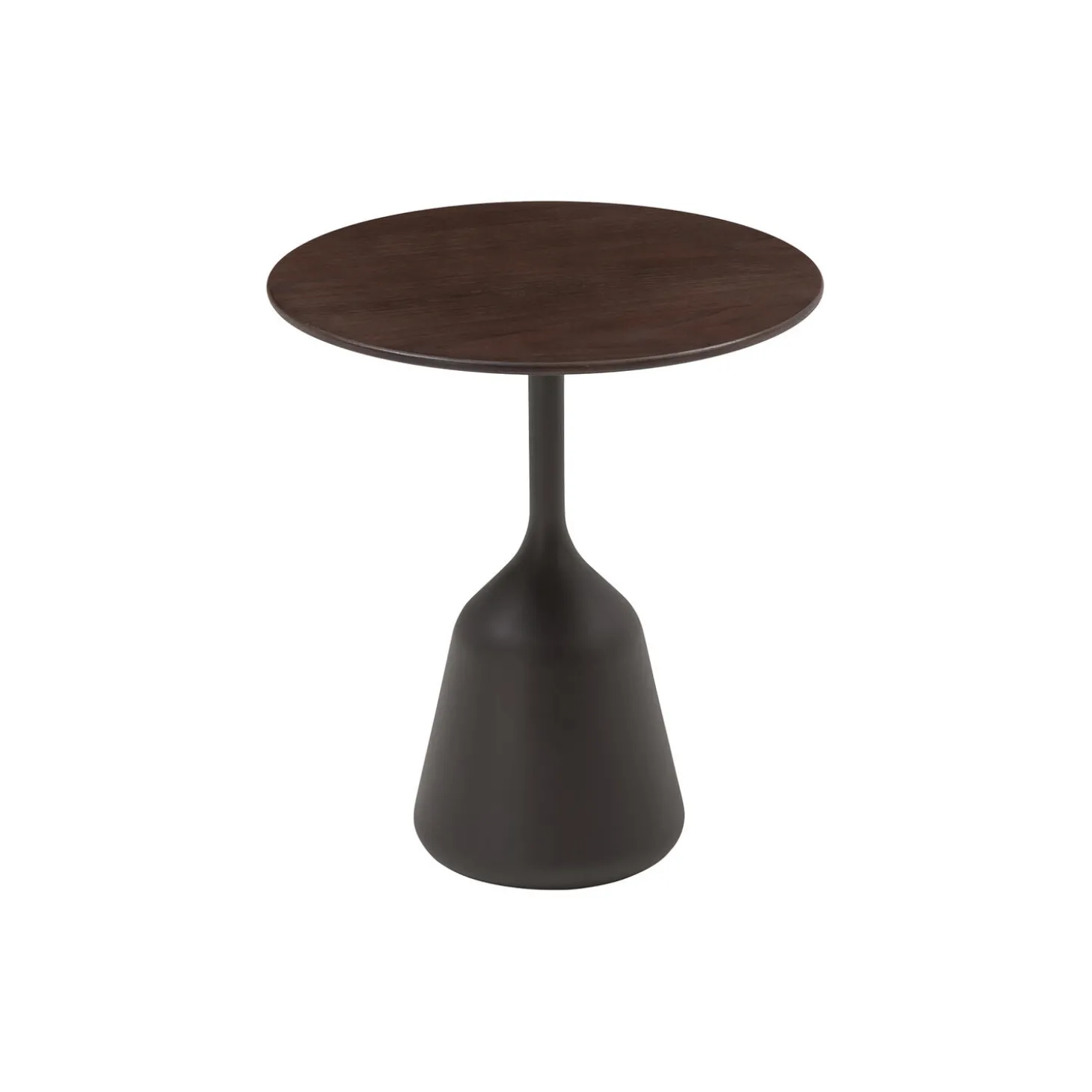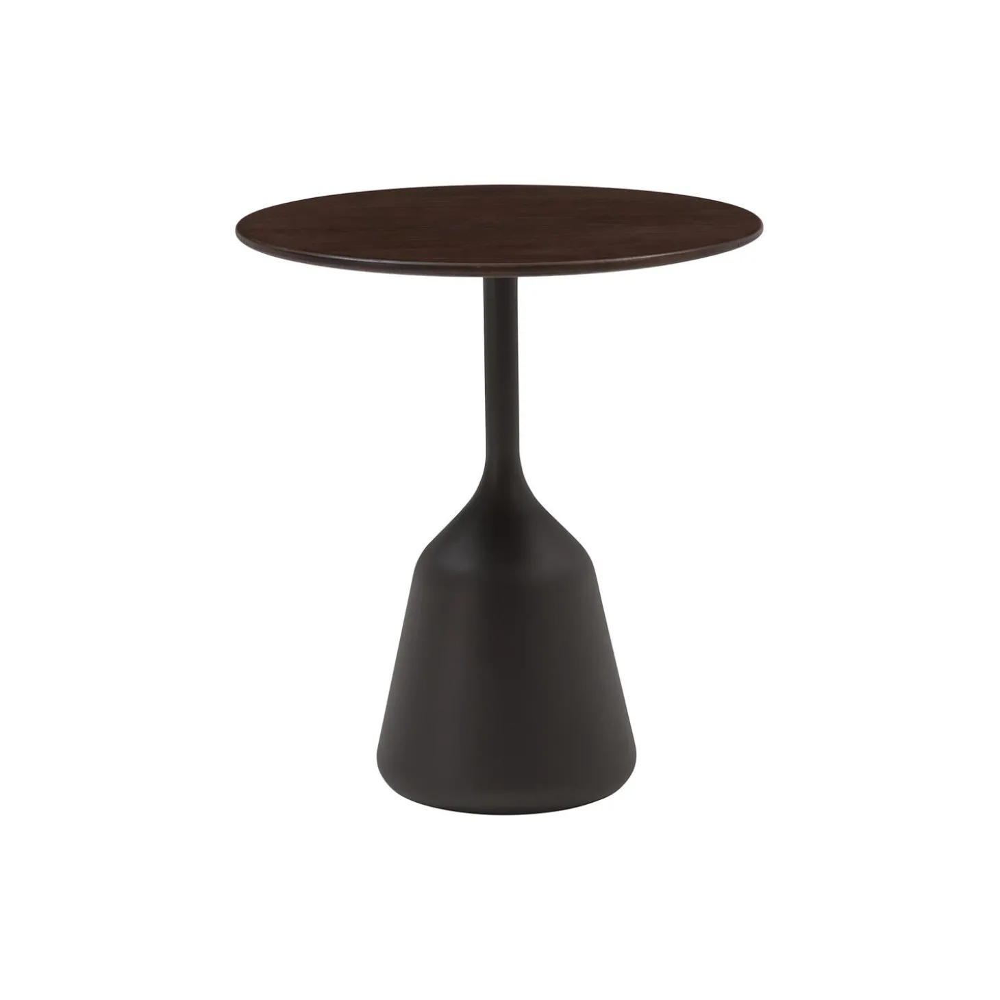 Coin Side Table med bordplade i mørkbejdset egetræsfinér og MDF samt stel i pulverlakeret støbt aluminium fra Wendelbo. Farve: dark oak. Mål: H: 50 x Ø 45 cm. Design: 365° North.