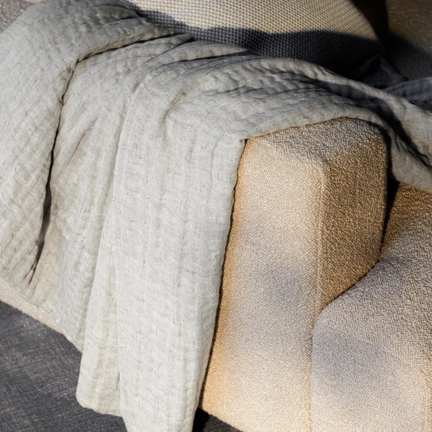 Collect SC81 plaid i bomuld og hør fra &Tradition. Farve: sand/cloud. Mål: 140×210 cm. Design: Space Copenhagen.