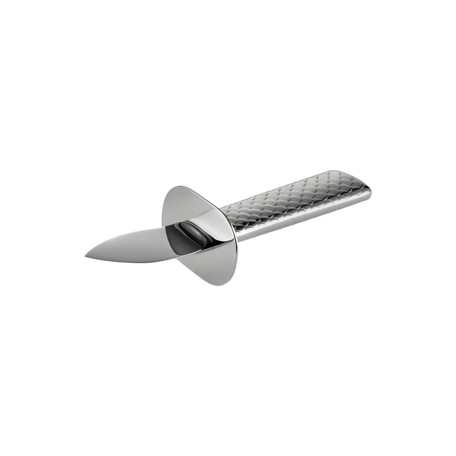 Østerskniv i blankpoleret rustfrit stål fra Alessi. Farve: stål. H: 4,2 x L: 16 x B: 5,30 cm. Design: Doriana e Massimiliano Fuksas.