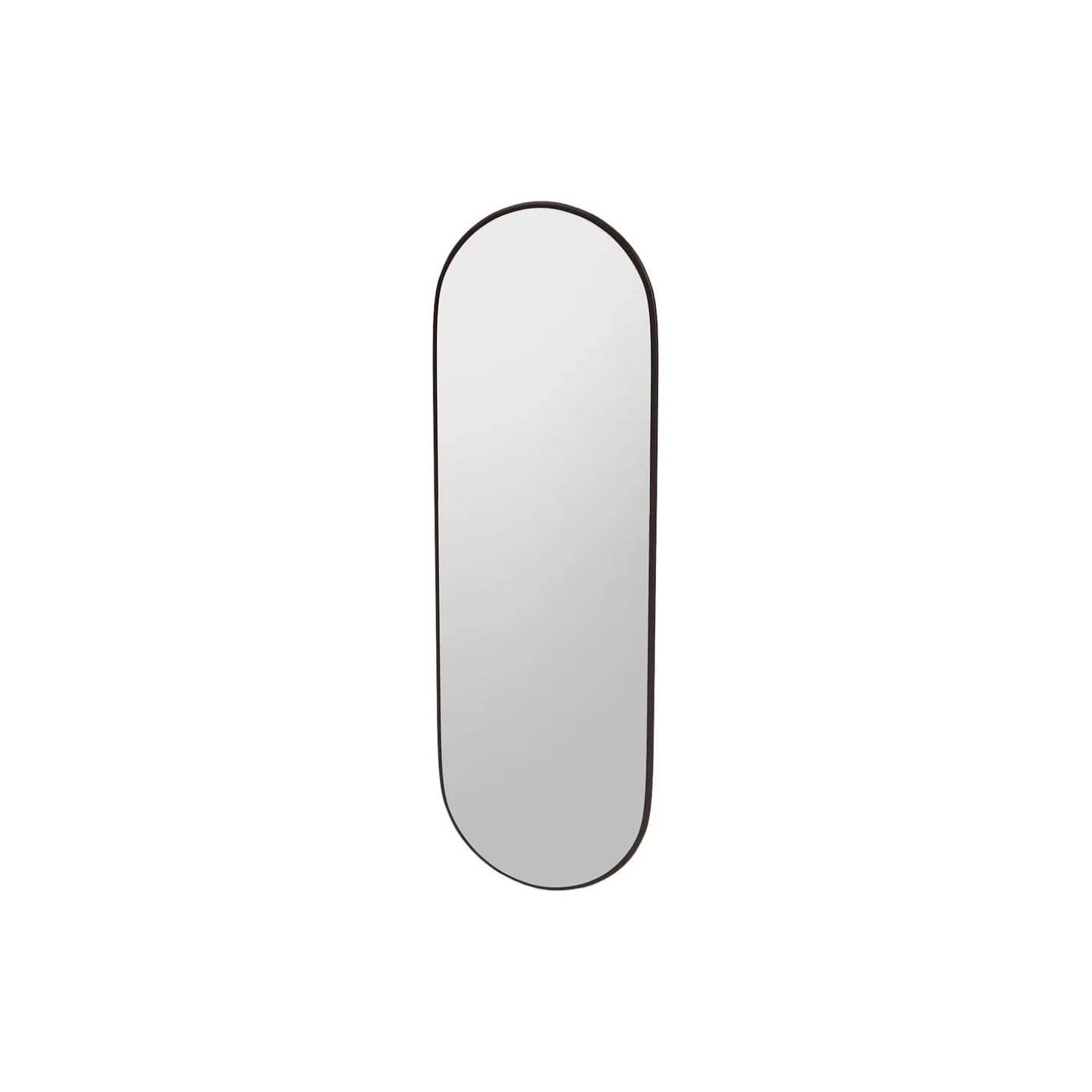 Colour Frame Mirrors er sammensat af 4 mm forsølvet glas på 12 mm MDF med en 13 mm spejlramme. Et spejl har fire huller til ophæng og kan monteres enten lodret eller vandret. Skruer er inkluderet. Alle spejle kan bruges i vådrum, men må ikke udsættes for direkte kontakt med vand. FIGURE er et aflangt ovalt spejl, der passer perfekt i soveværelset eller entréen. FIGURE er designet som et fuldfigurspejl med en blød oval form, der komplimenterer Montana-reolsystemets skarpere design.
