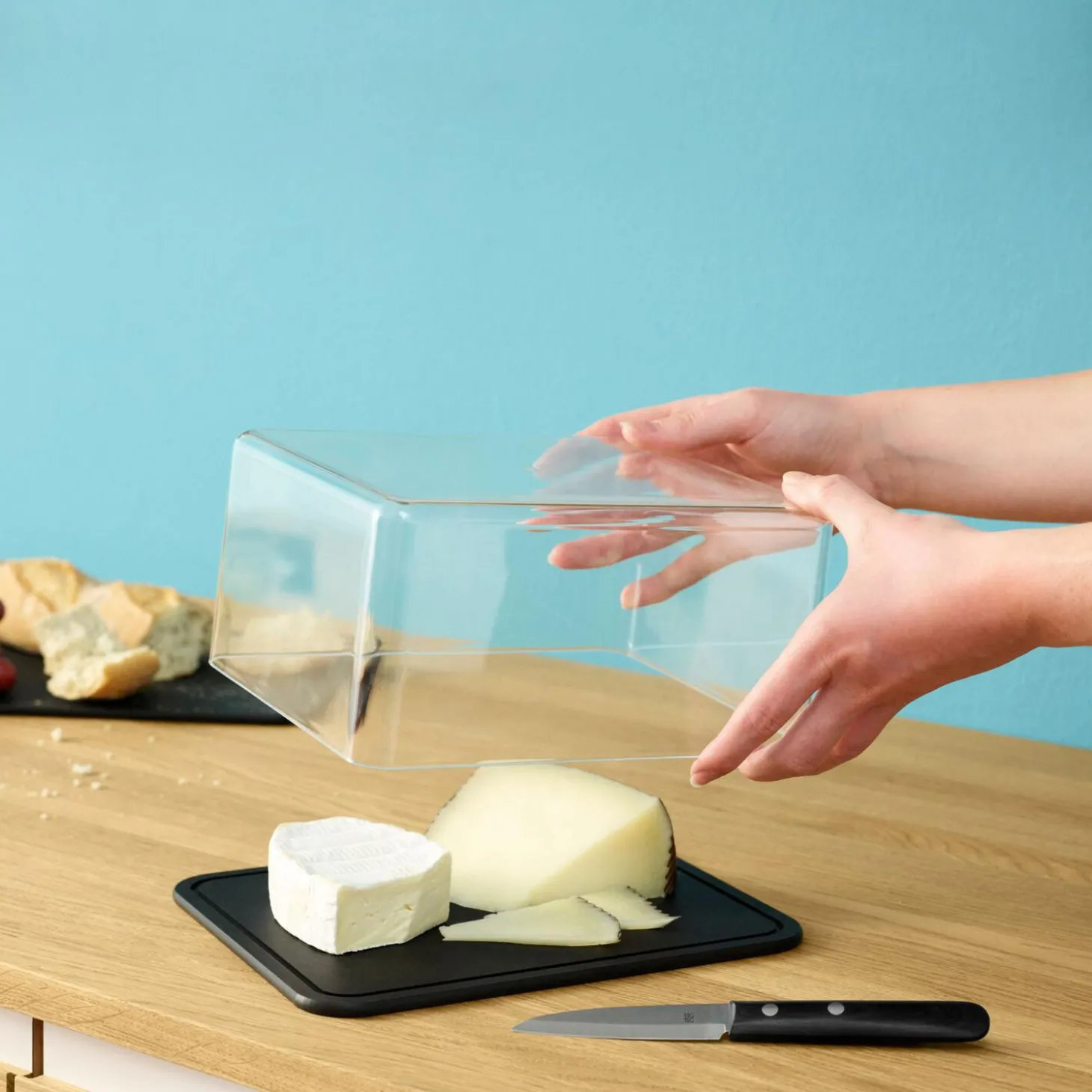 CONTAIN-IT er en osteklokke, der holder styr på osten eller pålægget i køleskabet og på spisebordet. Server din yndlingsost eller pålæg på serveringsbrættet af fibertræ, og når madvarerne skal tilbage i køleskabet sættes det gennemsigtige låg på, indtil CONTAIN-IT igen skal på bordet. Opbevaringsboksen er selvfølgelig fri for BPA og ftalater, og det funktionelle serveringsbræt i fibertræ er antibakterielt og kan gå i opvaskemaskinen.
