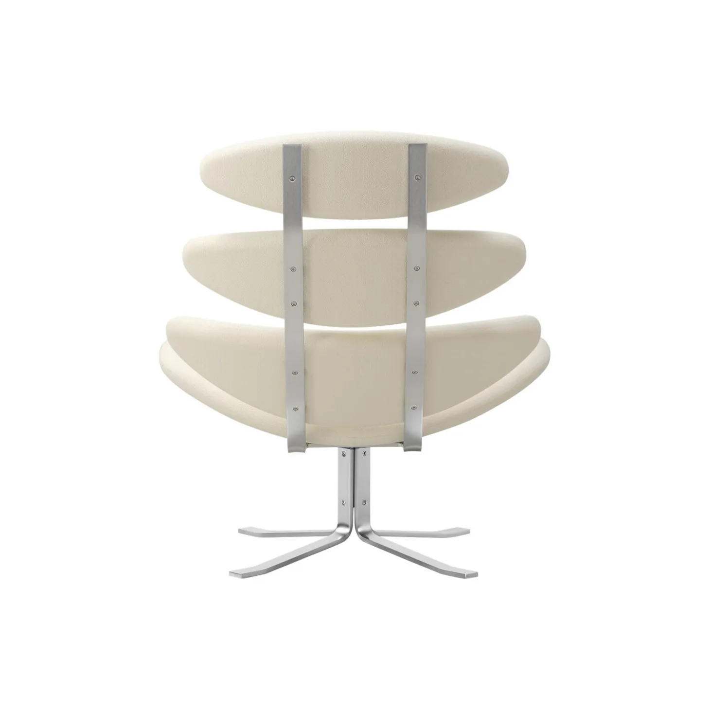 Corona stolen er en iøjnefaldende og eksperimenterende ener i dansk design. Stolen er kendt for sin ikoniske silhuet med ellipseformede, polstrede sædepuder, der gradvist øges i størrelse. Corona har et drejestel og en fleksibel ryg, der gør stolen yderst komfortabel og velegnet til private hjem såvel som lobbyer og kontormiljøer.