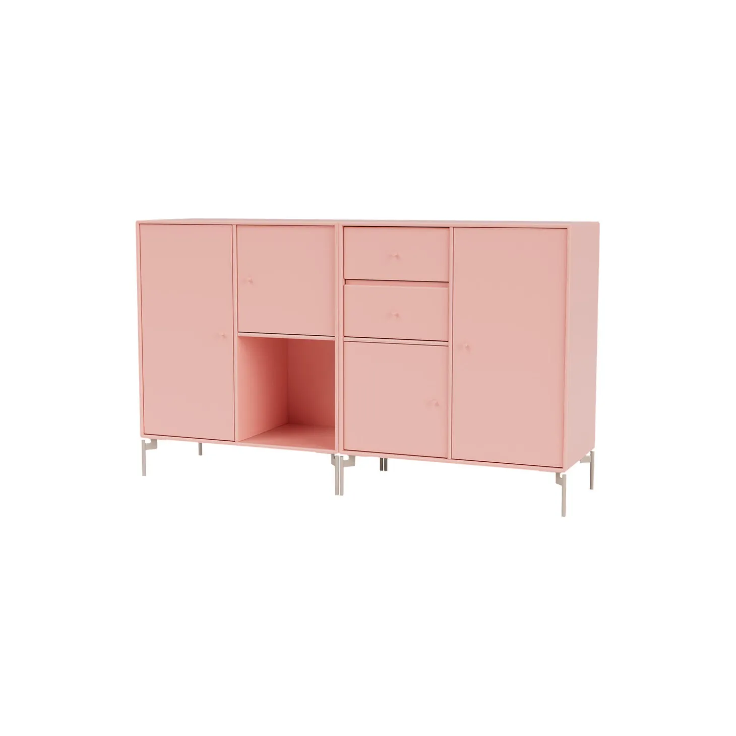 COUPLE er en moderne designet skænk, som er perfekt til opbevaring i stuen, entréen eller køkkenet, og som giver mulighed for både at udstille og at gemme ting. Skænken er rummelig og består af to skuffer, én åben hylde og skabe i forskellige størrelser. Ophængsbeslag medfølger.