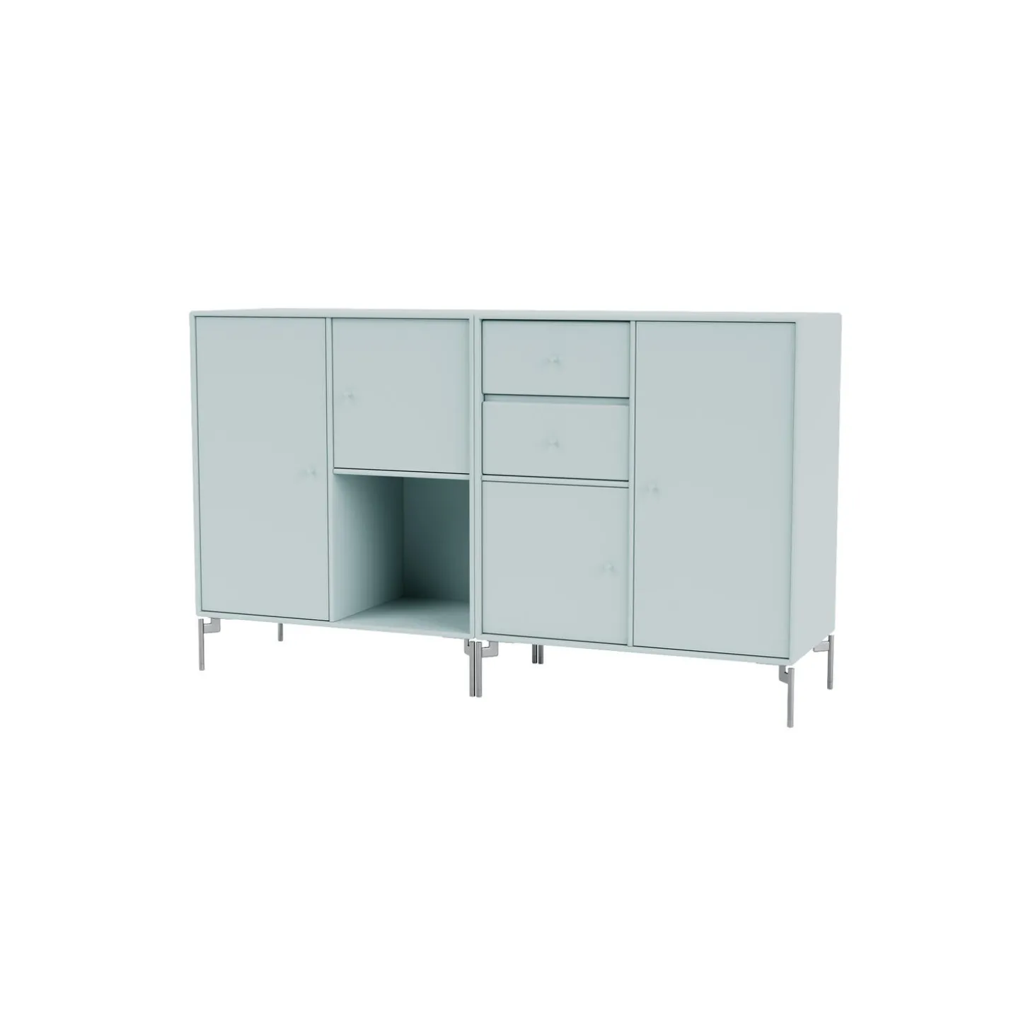 COUPLE er en moderne designet skænk, som er perfekt til opbevaring i stuen, entréen eller køkkenet, og som giver mulighed for både at udstille og at gemme ting. Skænken er rummelig og består af to skuffer, én åben hylde og skabe i forskellige størrelser.