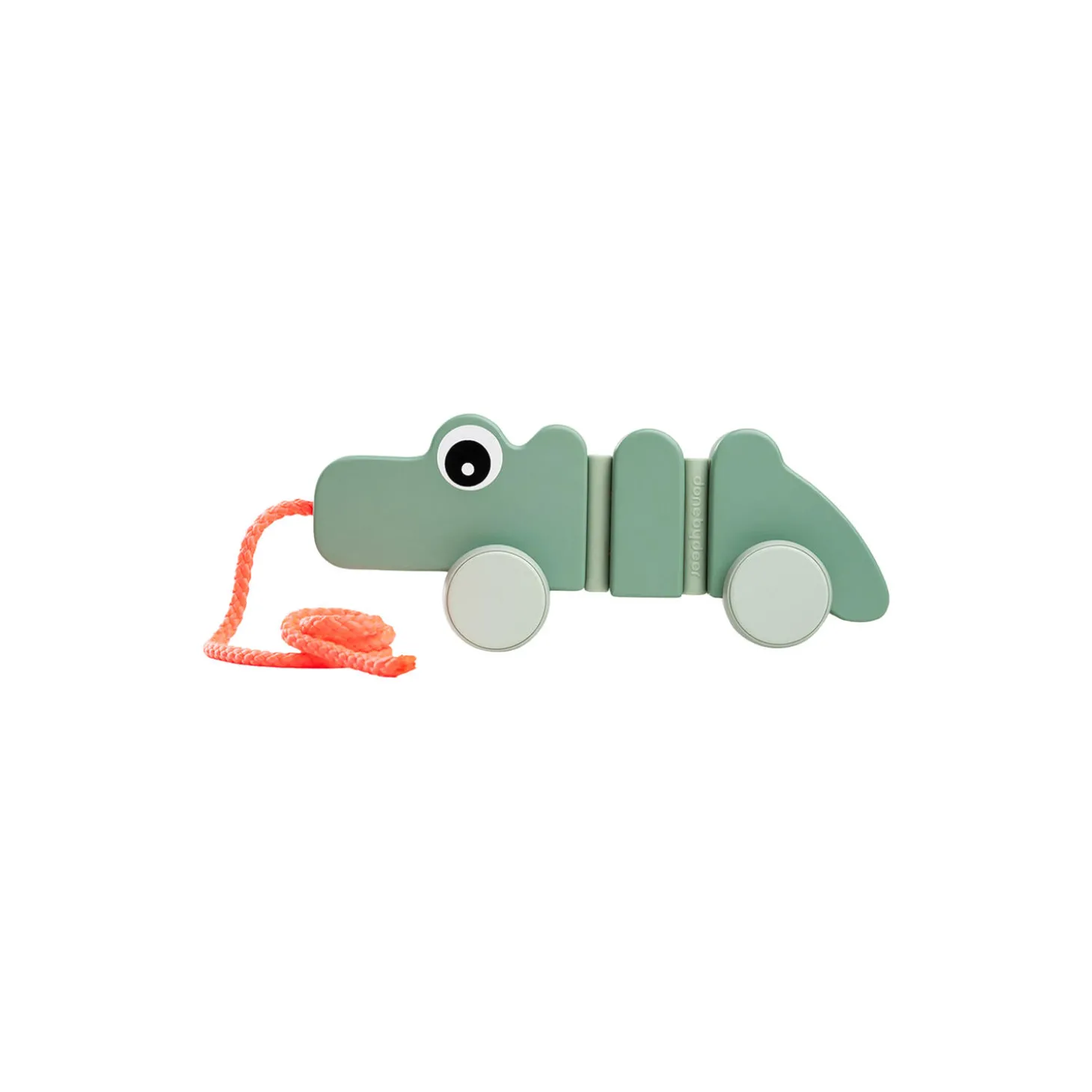 • Croco trækdyr i grøn • Anbefales fra 12+ måneder, eller når dit barn kan gå sikkert selv • Motiverer dit barn til at gå og lege med Croco • Crocos krop bevæger sig, når den bliver trukket afsted • Bløde hjul der er skånsomme mod gulve • Fremstillet af ansvarligt produceret træ og malet med vandbaseret maling, der er fri for skadelige stoffer – hvilket gør den sikker for dit barn at lege med