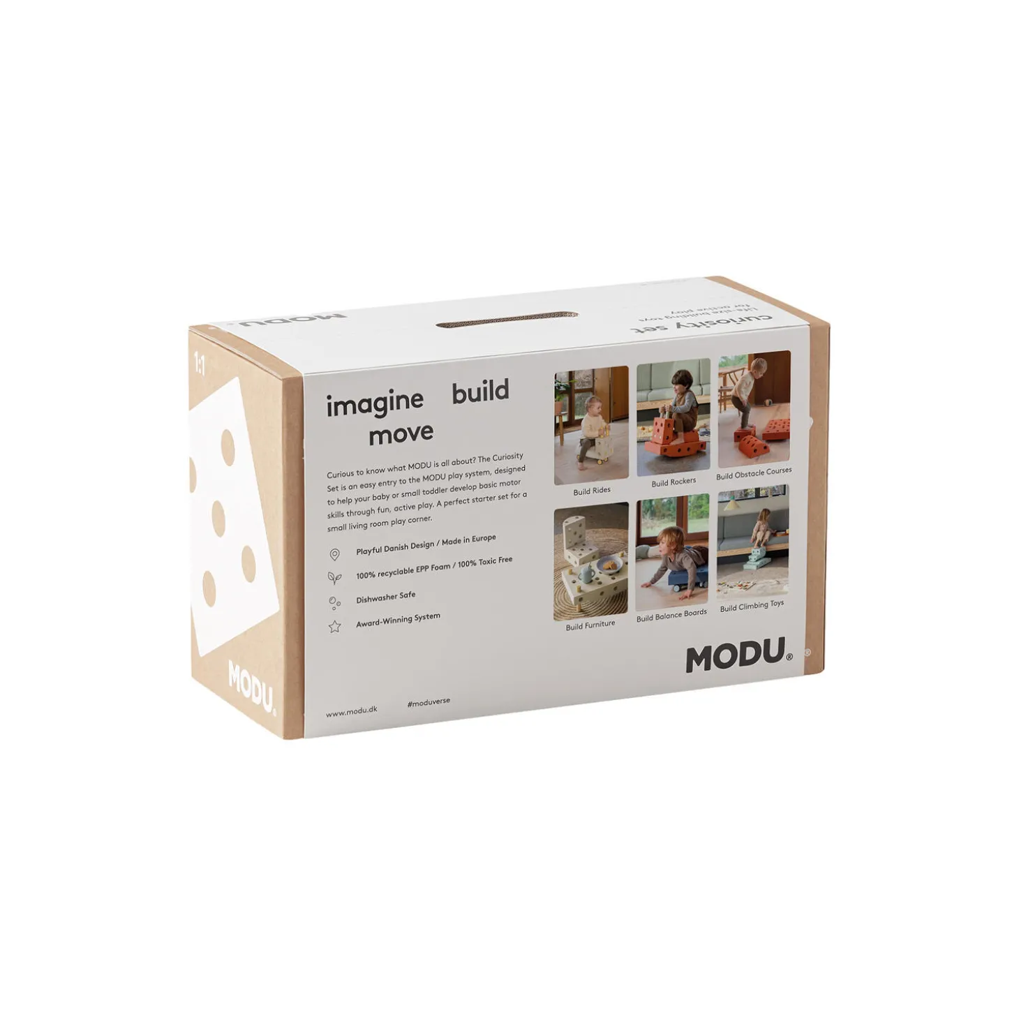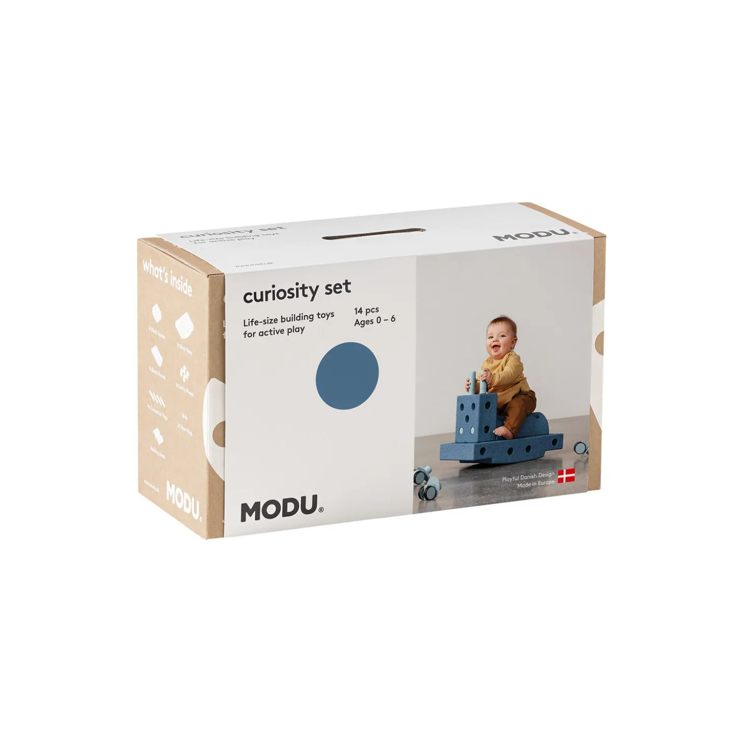 Curiosity-sættet er en introduktion til MODU-universet. Det består af klodser, pinde og drejehjul, der kan sammensættes lige som man vil. Med Curiosity-sættet kan du bygge og udforske med et begrænset, men alligevel alsidigt udvalg af MODU-elementer. Det er en perfekt startpakke til at vække nysgerrigheden og fremme kreativ leg hos børnene. Curiosity sæt i EPP-skum og ABS-plast fra MODU. Mål: 21 x 31 x 51.