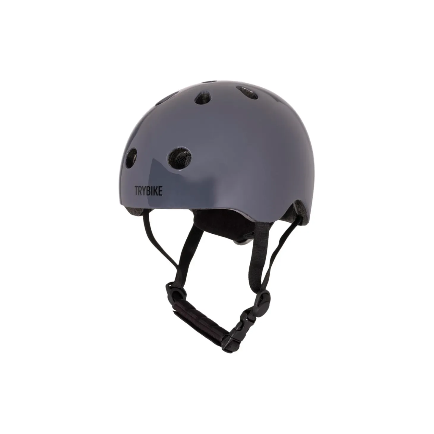Cykelhjelm i ABS-plast fra Trybike. Farve: antracitgrå. Mål: Ø 53-57 cm.