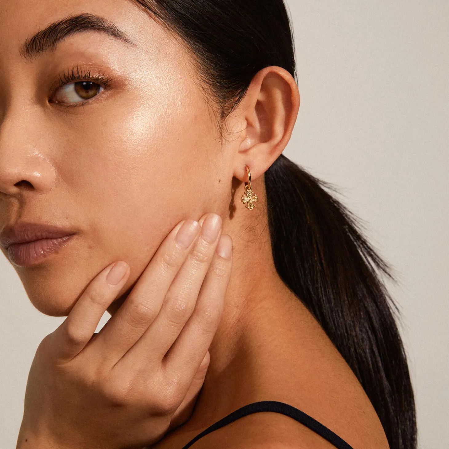 Små guldbelagte huggie hoops med mini-Dagmarkors. Lavet af 99% genanvendt materiale. Pilgrim har nytænkt det klassiske vedhæng og kombineret det med et par små guldbelagte huggie hoops i et opdateret cute look. Kombiner de små Dagmarkors-creoler med flere øreringe op langs øret, eller lad dem shine alene i et klassisk romantisk look. Dagmarkorset regnes for at være et af Danmarks største nationalklenodier, og er det tætteste man kommer på et nationalsmykke. I Danmark er der tradition for at give Dagmarkorset i barnedåbsgave eller konfirmationsgave, – det smukke symbol kan bruges i alle sammenhænge.