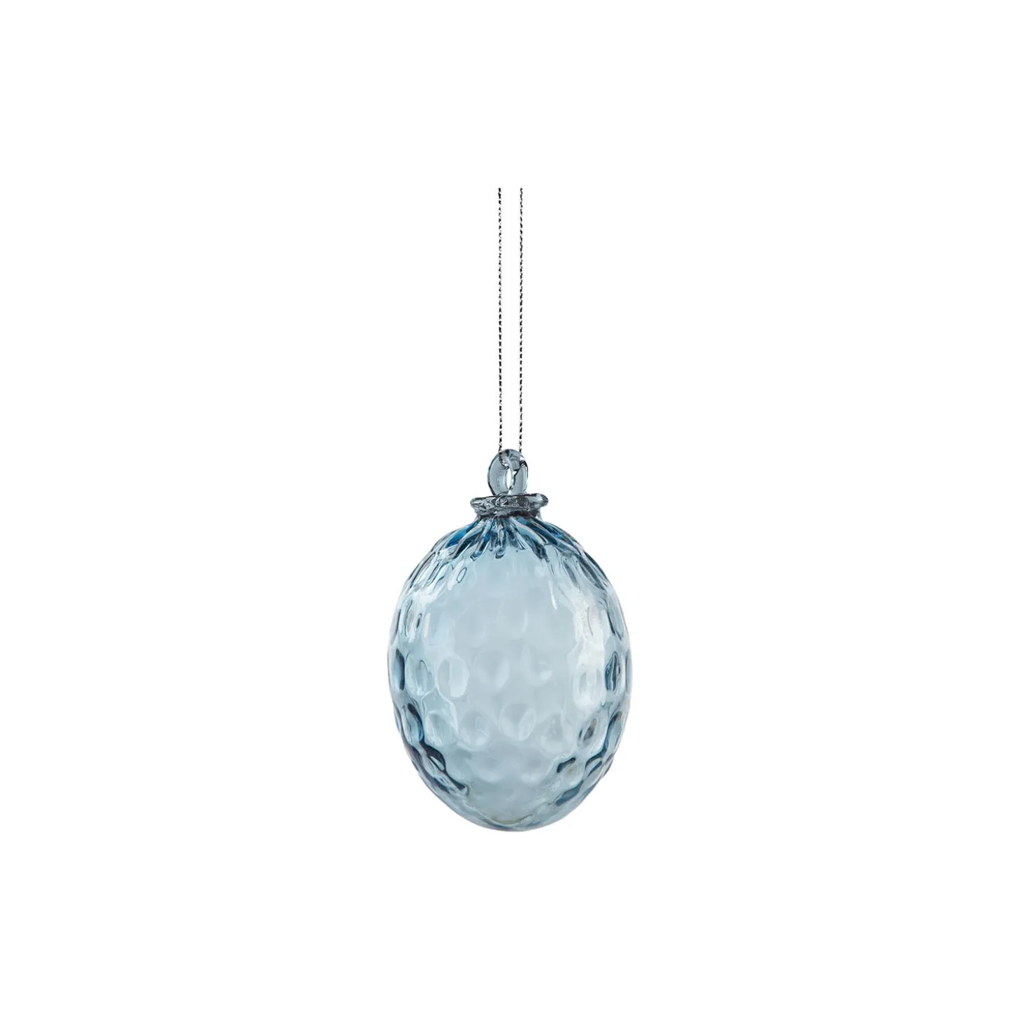 Danish Summer påskeæg i mundblæst glas fra Kodanska. Farve: blue smoke. Mål: H: 9 cm.