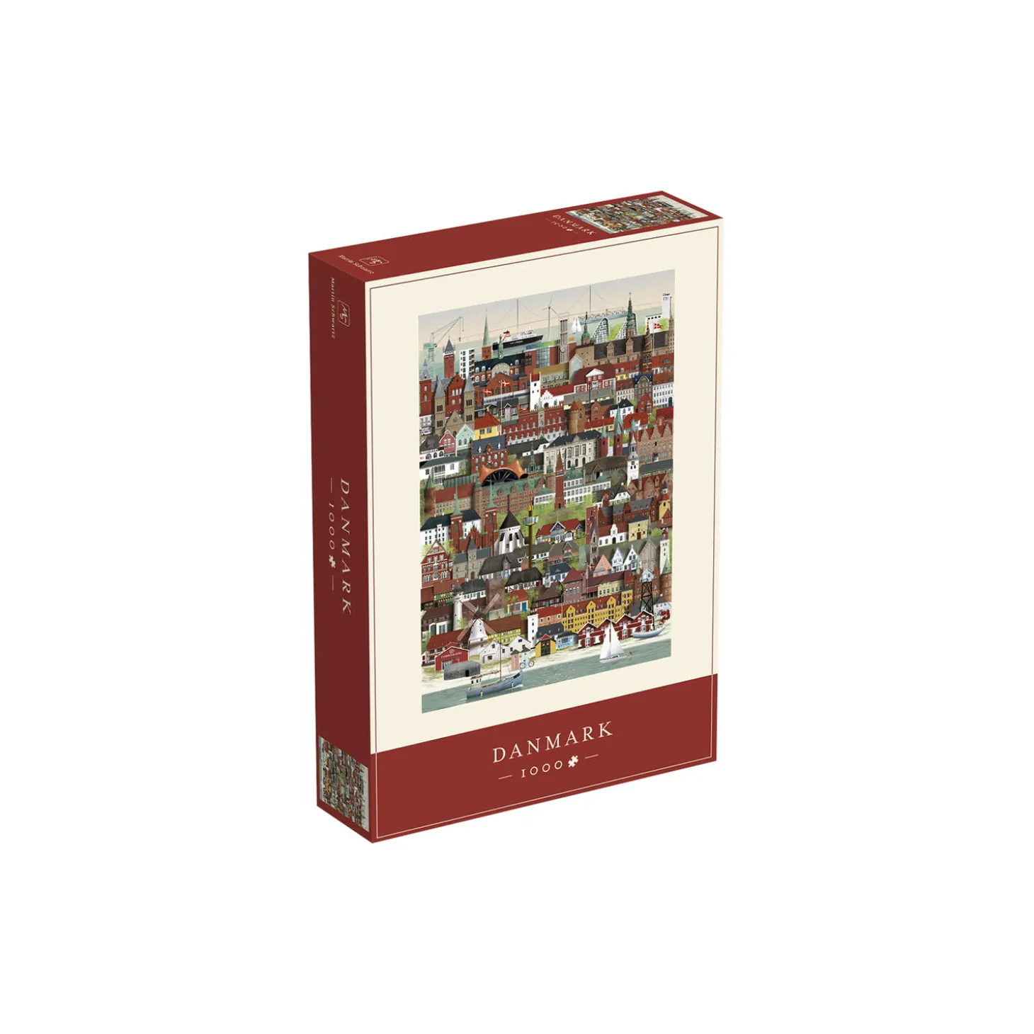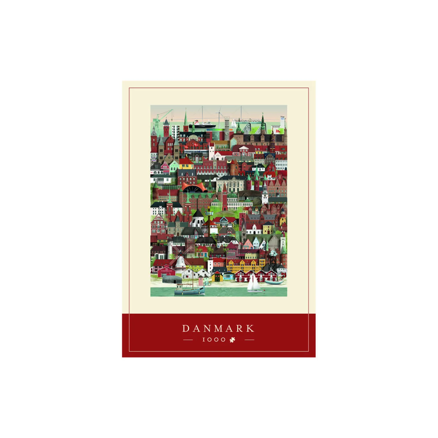 Danmark puslespil trykt på pap fra Martin Schwartz. Farve: multifarvet. Mål: 50×70 cm. Antal: 1000 brikker.