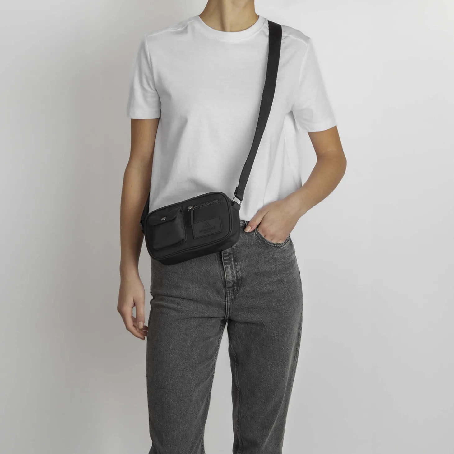 Darla Small Crossbody Monochrome fra Markberg er en praktisk crossbody taske som er produceret i 100% genanvendt polyester. Tasken er vandafvisende og lavet i et ekstra slidstærkt materiale. Tasken lukkes med lynlås og har en lille lomme og lynlåsdetaljer på fronten. Tasken har en lille lynlåslomme samt to små lommer indvendig. Markberg logoet på fronten er lavet i vegansk silikone, hvor der ikke er brugt animalske materialer. Tasken for er 100% genanvendt polyester. Mål: 20 cm x 12 cm x 6 cm