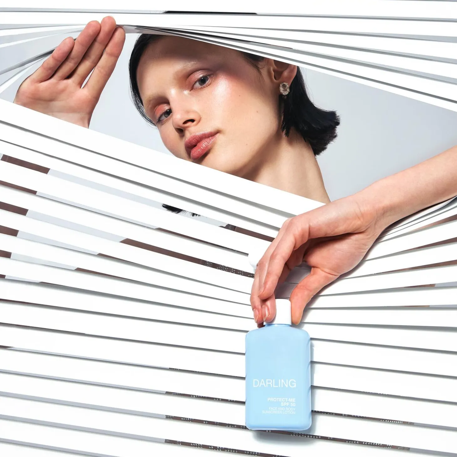 Solbeskyttende lotion til ansigt og kropPlej og beskyt din hud med DARLING PROTECT-ME SPF 50, en solcreme og daglig fugtighedscreme til både ansigt og krop, som beskytter din hud mod skadelige UVA- og UVB-stråler samt miljøforurening. Tag hudbeskyttelsen til det næste niveau med dette kraftværk af antioxidanter. Den forbedrede nye miljøbevidste formel indeholder Next-Gen UV-filtre for højere ydeevne og en grønnere profil, der respekterer havets biodiversitet. Den er pakket med nærende jojobaolie og abrikoskerneolie, der giver en glattere hud, og indeholder allantoin og E-vitamin, der fugter og fremmer udstråling. Den hudvenlige formel indeholder også ekstrakt af padderokke, en næringsrig super-soother, der afværger de værste miljømæssige stressfaktorer og beskytter huden mod aldring og solskader.Darlings enestående signaturduft transporterer dig til et tropisk paradis med blide, frugtige noter af kokosnød og fersken sammen med et signaturstrejf af tiaréblomst og vanilje.DUFTBESKRIVELSE:Blomstret, frisk, sød, pudret Topnoter: Ozon, jordbær, fersken, kokosnød, appelsin, æble Hjertenoter: Liljekonval, tiaré, rose Basenoter: Vanilje, iris, ylang, ylang, neroliNyd den ikke-fedtede, fjerlette konsistens, der holder din hud sundere og mere strålende og husk på Darlings påmindelse til dig: Wear SPF and Stay Pretty Forever!DARLING PROTECT-ME SPF 50 er Reef Safe, vandfast, vegan-venlig og dermatologisk testet.FORDELE:- Nærende- Blødgørende- Anti-oxidant- Beroligende- Anti-ageAKTIVE INGREDIENSER:E-VITAMINE-vitamin er en vigtig ingrediens i solcreme på grund af sine antioxidantegenskaber. Ved at bekæmpe frie radikaler, som genereres af UV-stråling, hjælper det med at beskytte huden mod skader og for tidlig ældning. Derudover bidrager E-vitamin til solcremens overordnede effektivitet, hjælper med at reparere huden efter soleksponering og giver fugtgivende fordele, der sikrer, at huden forbliver hydreret og smidig. De mange fordele gør det til en vigtig ingrediens i denne formel, der forbedrer både beskyttelse og hudens sundhed.EKSTRAKT AF PADDEROKKEEkstrakt af padderokke, der stammer fra padderokkeplanten (Equisetum arvense), er kendt for sine mangfoldige fordele for huden. Rig på antioxidanter, herunder flavonoider og phenolforbindelser, hjælper padderokkeekstrakt med at bekæmpe oxidativ stress forårsaget af miljøfaktorer som UV-stråling og forurening. Ved at neutralisere frie radikaler hjælper det med at forebygge for tidlig aldring, reducere forekomsten af rynker og fremme den generelle hudsundhed. Derudover har padderokkeekstrakt antiinflammatoriske egenskaber, hvilket gør det beroligende for irriteret eller betændt hud.ALLANTOINSelv om det ikke direkte beskytter mod UV-stråler, giver tilstedeværelsen i solcremeformuleringer mange fordele for hudens sundhed og komfort. Allantoin har lindrende egenskaber, der beroliger irriteret hud og reducerer inflammation. Desuden fremskynder det hudens helingsprocesser, hjælper med at reparere solskader og opretholder hudens integritet. Evnen til at holde på fugten bidrager yderligere til effektiviteten og sikrer, at huden forbliver hydreret og smidig på trods af dehydrering forårsaget af soleksponering.ABRIKOSKERNEOLIEAbrikoskerneolie, der udvindes af abrikosens frø, er en let og mild olie, der er værdsat i hudpleje for sine fugtgivende og nærende egenskaber. Den er rig på vitaminer og essentielle fedtsyrer og gennemfugter huden uden at tilstoppe porerne, så den efterlades blød, glat og strålende. Dens blødgørende egenskaber gør den særlig gavnlig for følsom hud, mens de antiinflammatoriske egenskaber hjælper med at lindre irritation og fremmer en sund teint. Derudover giver det høje indhold af E-vitamin et ekstra boost af antioxidantbeskyttelse, der bekæmper skader fra frie radikaler og understøtter den generelle hudsundhed.JOJOBAOLIEJojobaolie, der udvindes af frøene fra jojobaplanten, er kendt for sine balancerende og fugtgivende egenskaber. Den efterligner hudens naturlige olier og fugter effektivt uden at tilstoppe porerne, hvilket gør den velegnet til alle hudtyper. Jojobaolie er rig på antioxidanter og fedtsyrer og hjælper med at berolige og nære huden, så den får en sund teint.ANVENDELSE:Påfør rigeligt på ansigt og krop før soleksponering, og massér, indtil cremen er absorberet. Påfør ofte for at opretholde beskyttelsen, mindst hver anden time, og især efter sved, svømning eller håndklædetørring.