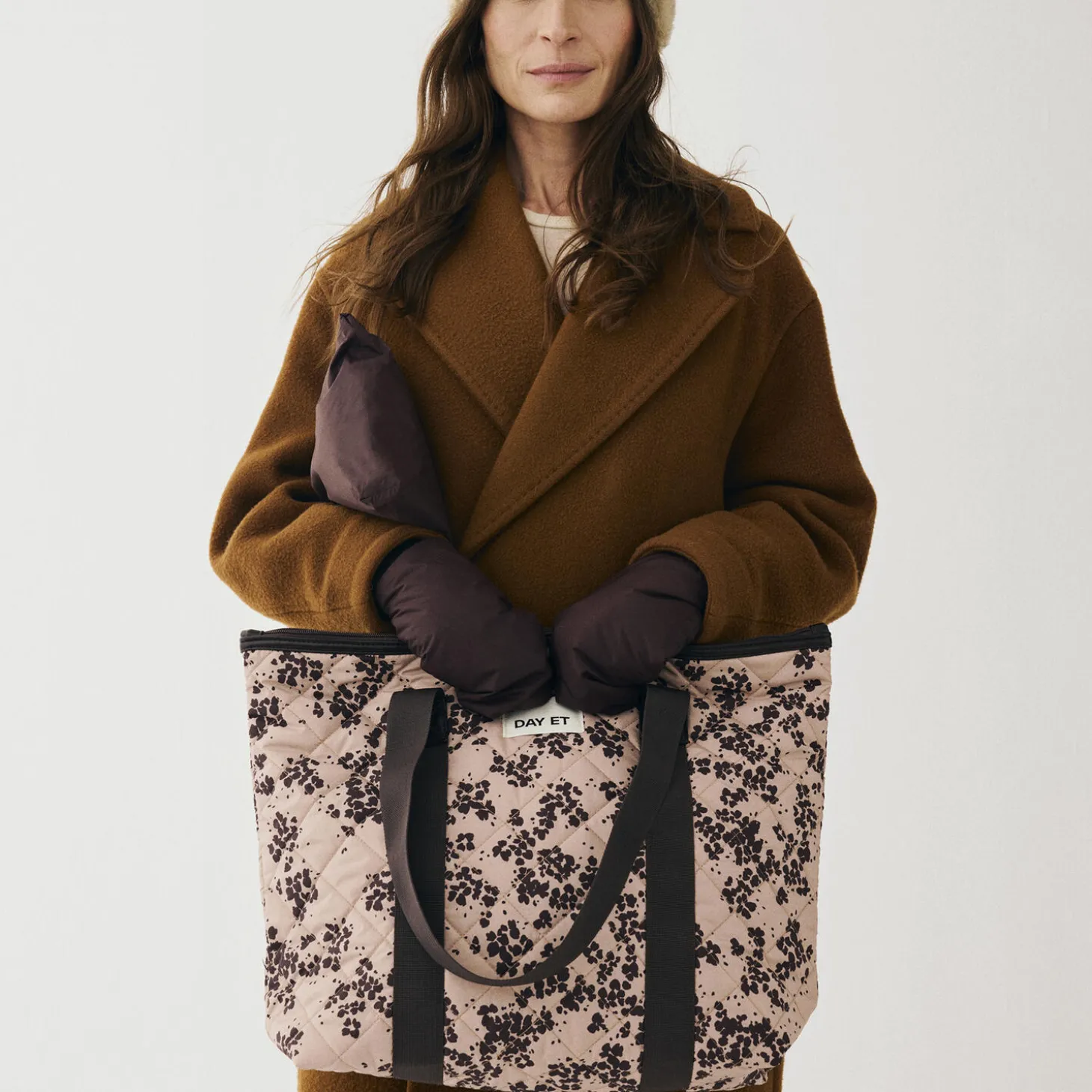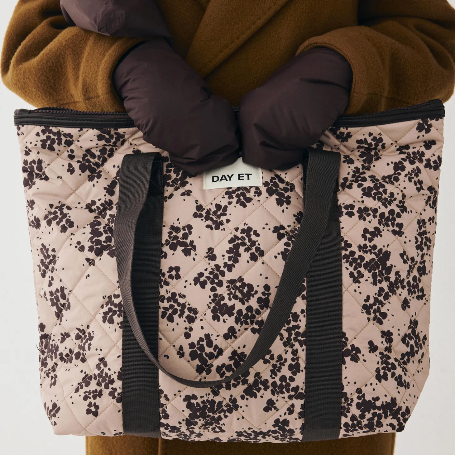 Denne funktionelle shopper taske er designet i et quiltet mønster med print og lukkes med en lynlås. Indvendig har den en lille lynlås lomme, hvor du kan opbevare dine mindre sager. Tasken har også lange stropper, som gør det behageligt at bære den over skulderen. Taskens ydre stof og inderfor er lavet af 100% certificeret genanvendt materiale.