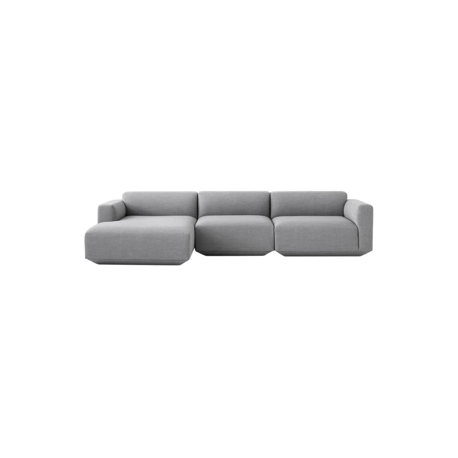 Develius modulsofa E med polstring i Fiord 151 af Kvadrat og stel i træ fra &Tradition. Farve: lysegrå. Mål: H: 70 x L: 309 x D: 89/150 cm. Siddehøjde: 42 cm. Design: Edward van Vliet. Sofapuder medfølger ikke.