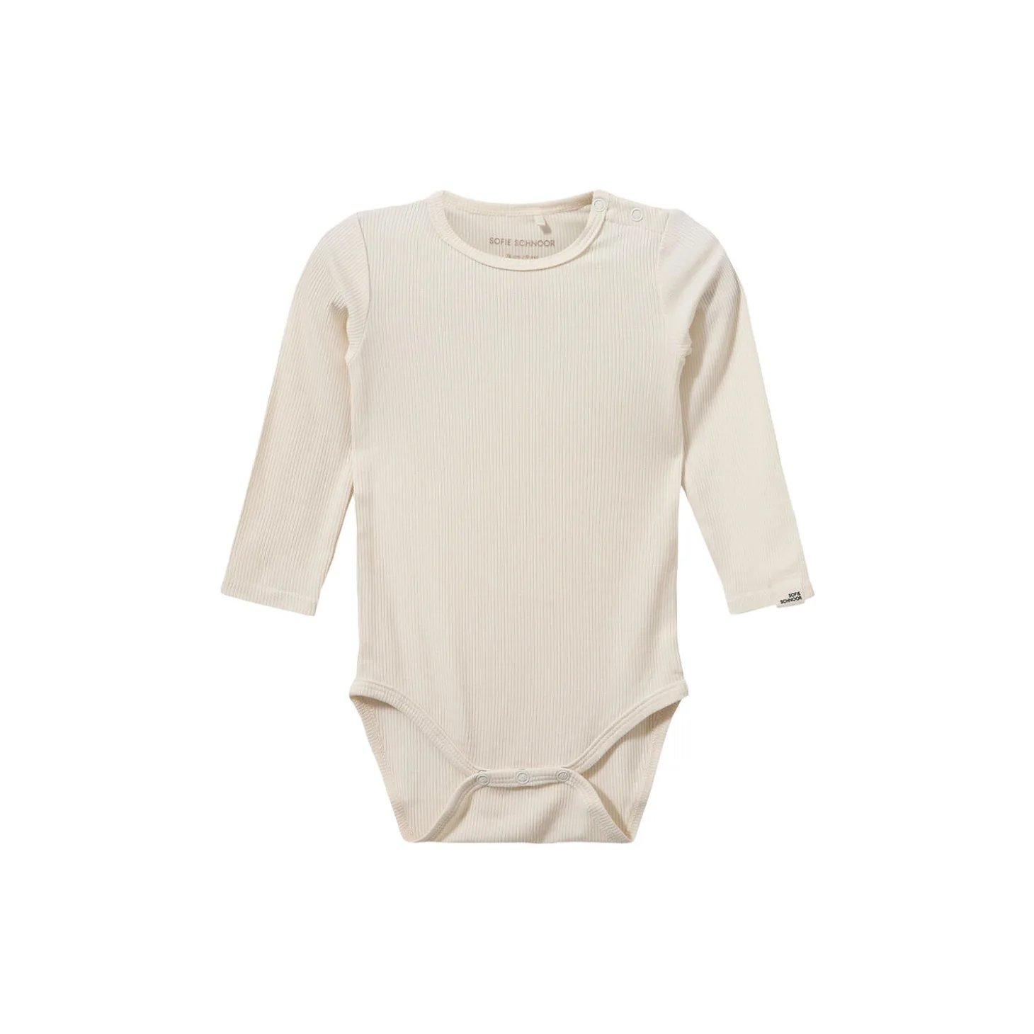 Bodystocking med lange ærmer og en rund halsudskæring. Bodyen lukkes med trykknapper forneden. Fremstillet af 95% bomuld, hvilket sikrer en blød og behagelig pasform.