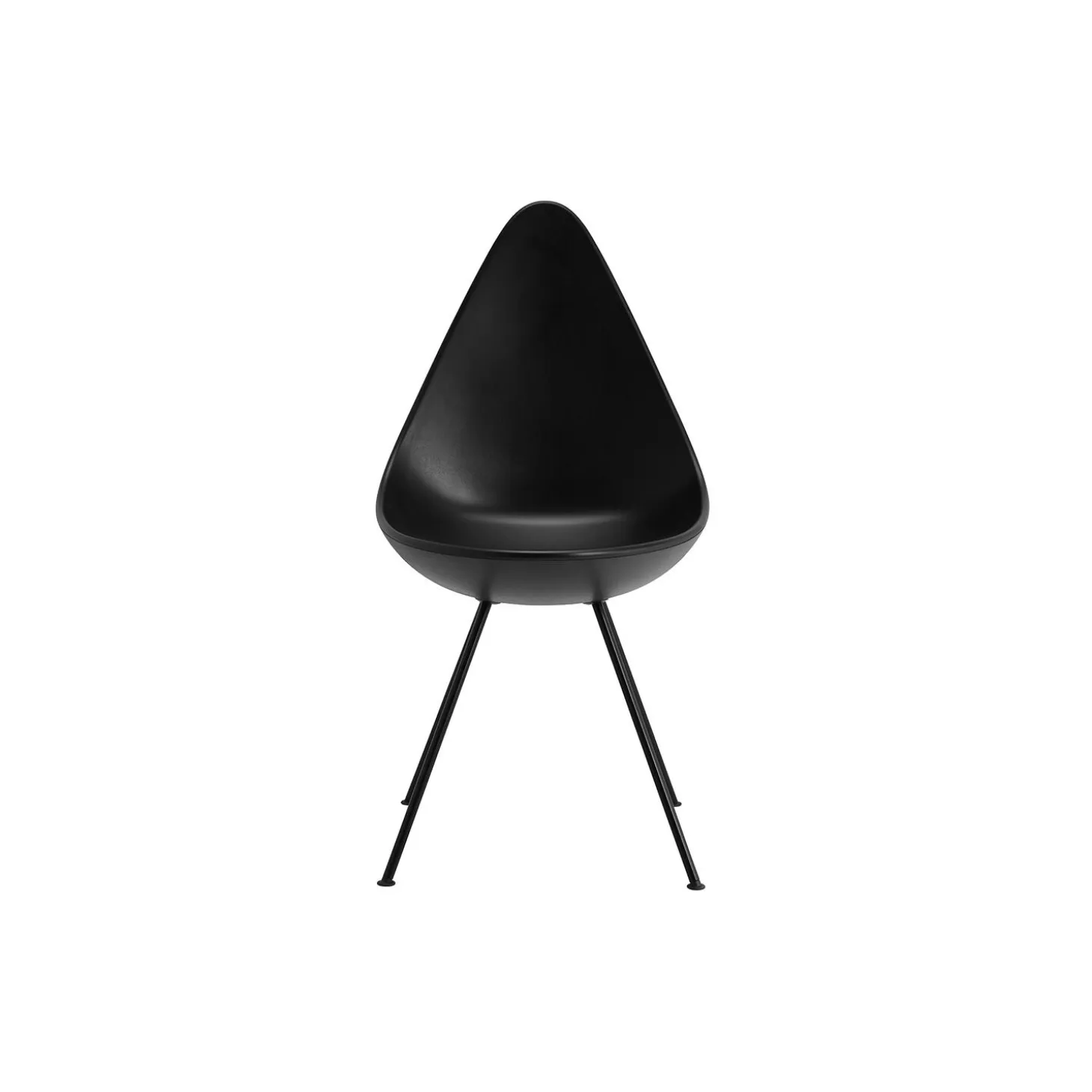 Dråben™ i ABS plast og pulverlakerede ben fra Fritz Hansen. Farve: black monochrome. Mål: 88,5×45,5×54,5 cm. SH: 46 cm. Design: Arne Jacobsen.