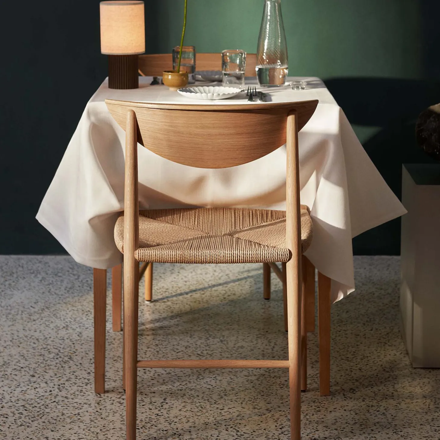 - Materiale: olieret eg, sæde i papirgarn og ryglæn i olieret formpresset egetræsfinér