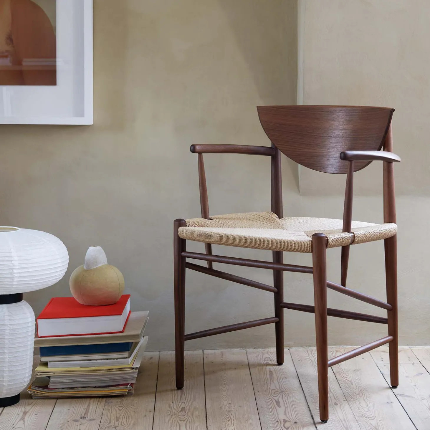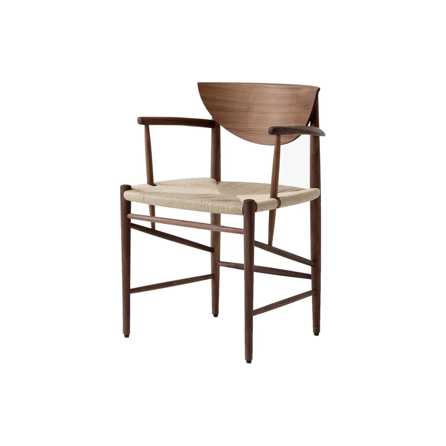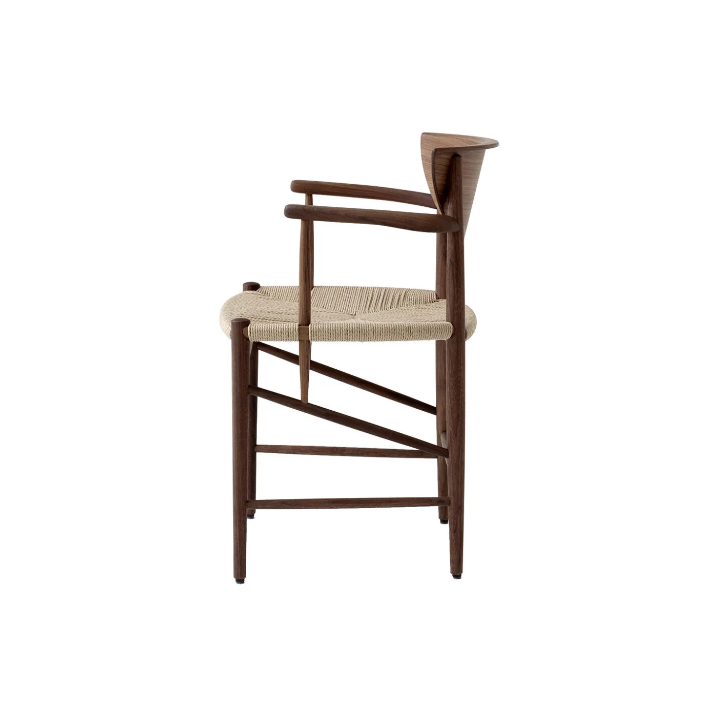 - Materiale: olieret valnød, sæde i papirgarn og ryglæn i olieret formpresset valnøddetræsfinér
