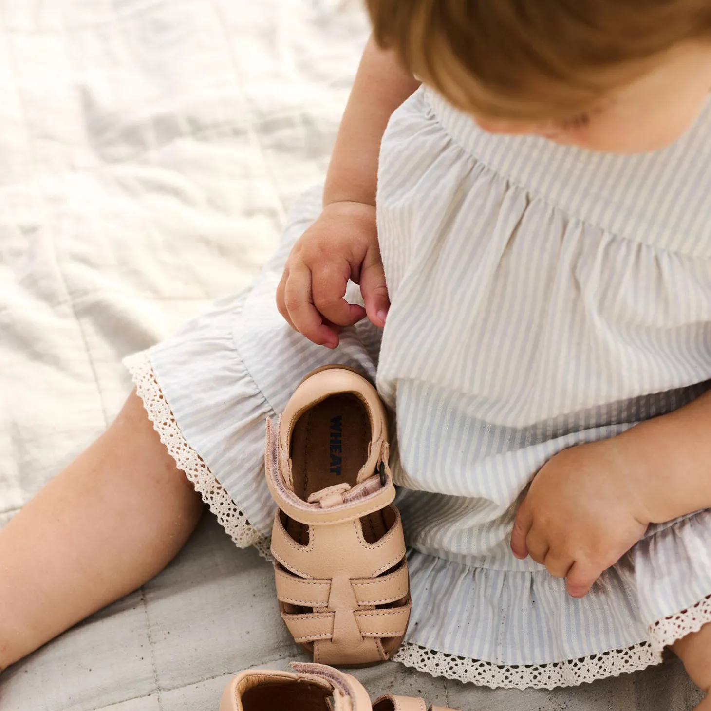 Wheat’s sweet dresses are easy and comfortable for your baby to wear. The dress has a flattering cutline with gatherings, which gives the dress some lovely volume. It has button closure at the front to make it easier for you to dress your baby. The dress is easy to style with a pair of our shoes to complete the cute look or you can add some leggings and a knit on the colder days.