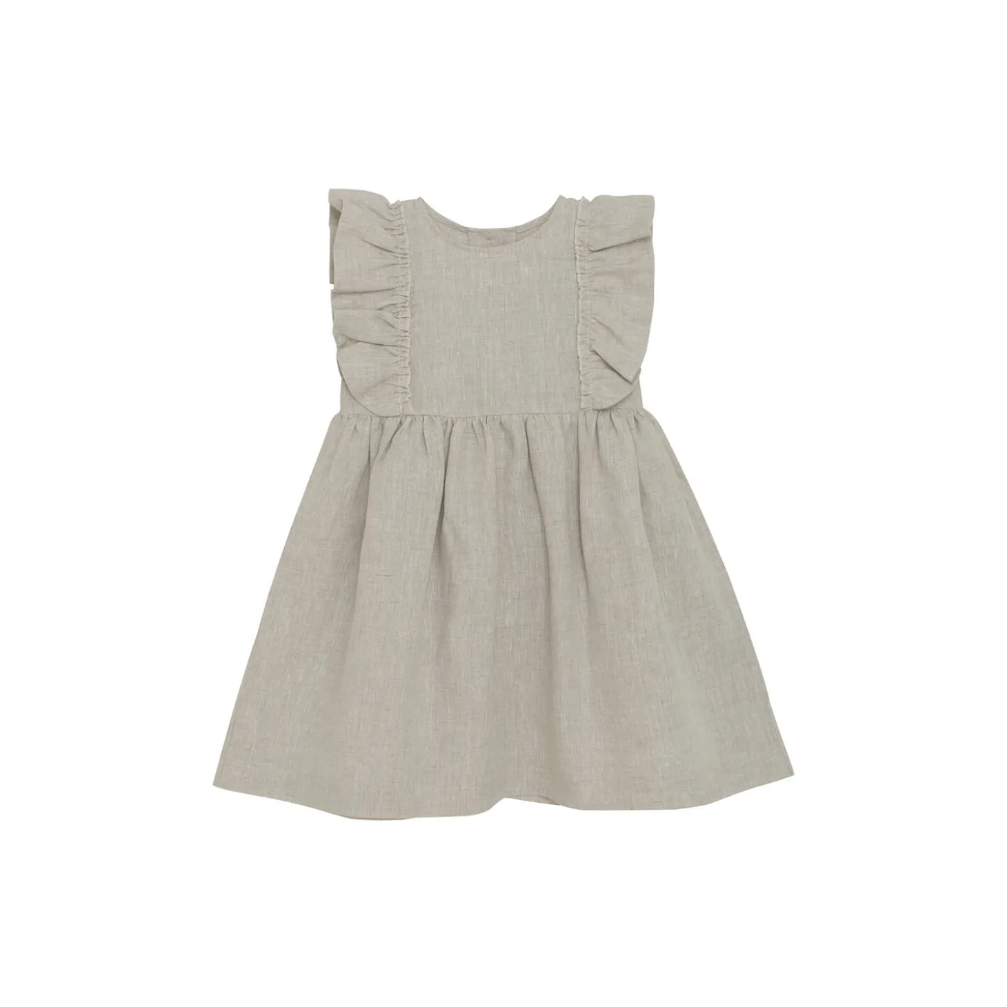 Flot enkeltfarvet kjole fra HUTTEliHUT. Vævet i 100% linen. Kjolen har flæser fra skulderen ned til taljen, som giver et flot piget look. Stofsamlingen ved taljen giver en flot detalje. Lukkes med knapper bagpå. Certificeret i hht. OEKO-TEX® STANDARD 100 Cert. No. 2276-364 DTI