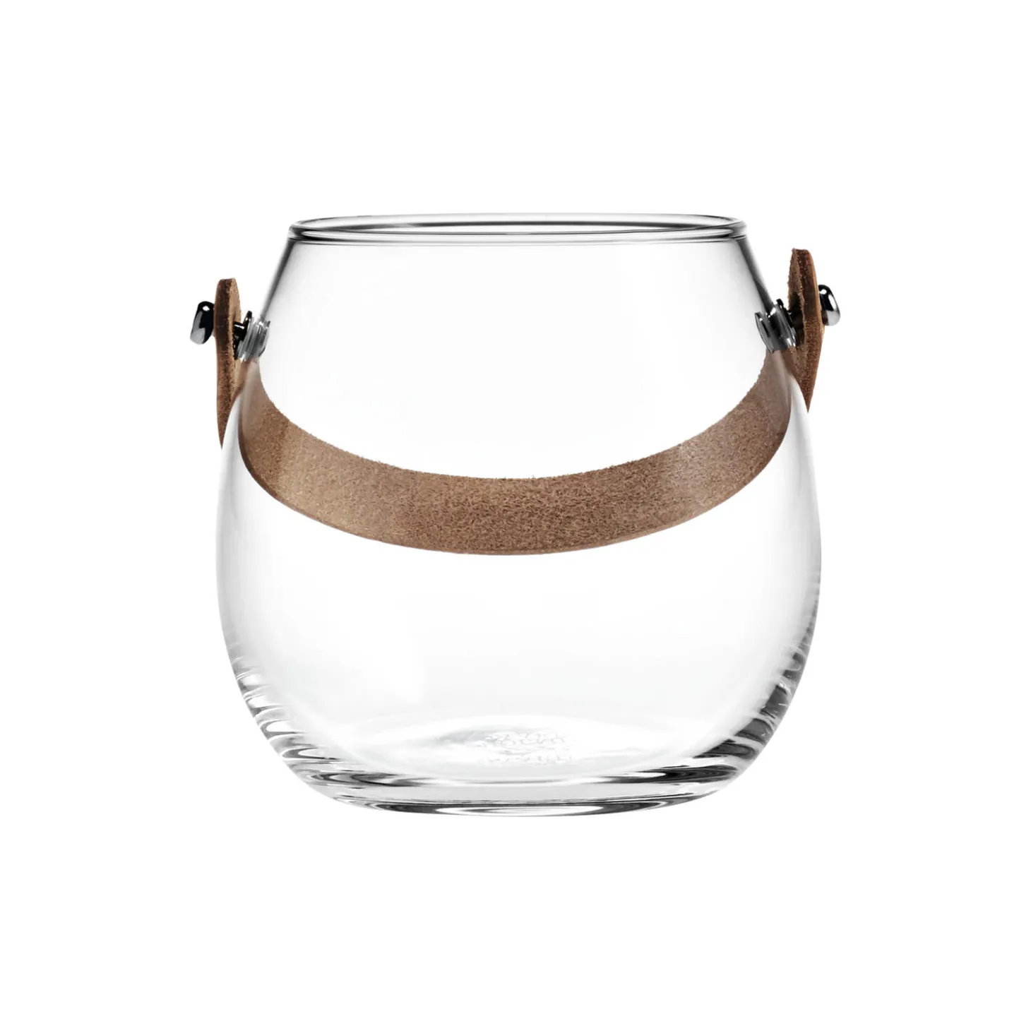 - Materiale: mundblæst glas, læder