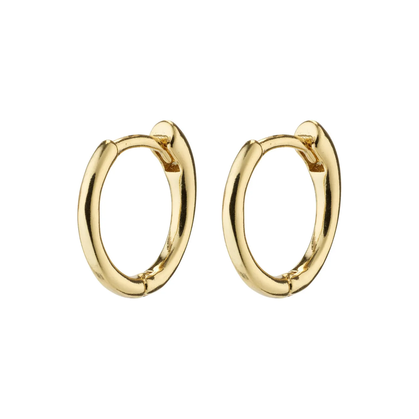 Timeless gold! De guldbelagte hoops fra Pilgrim er en klassiker, der altid vil være populær. Brug dem igen og igen, og mix og match med andre items for et personligt look. Stack for eksempel med større hoops og brede creoler for et personalized look. Recycled item, der er lavet af 99% genanvendt materiale. Øreringene har en letanvendelig kliklås, så just click, stack and slay.